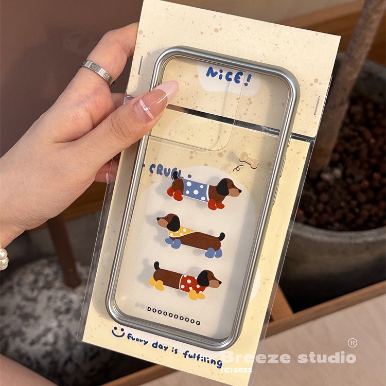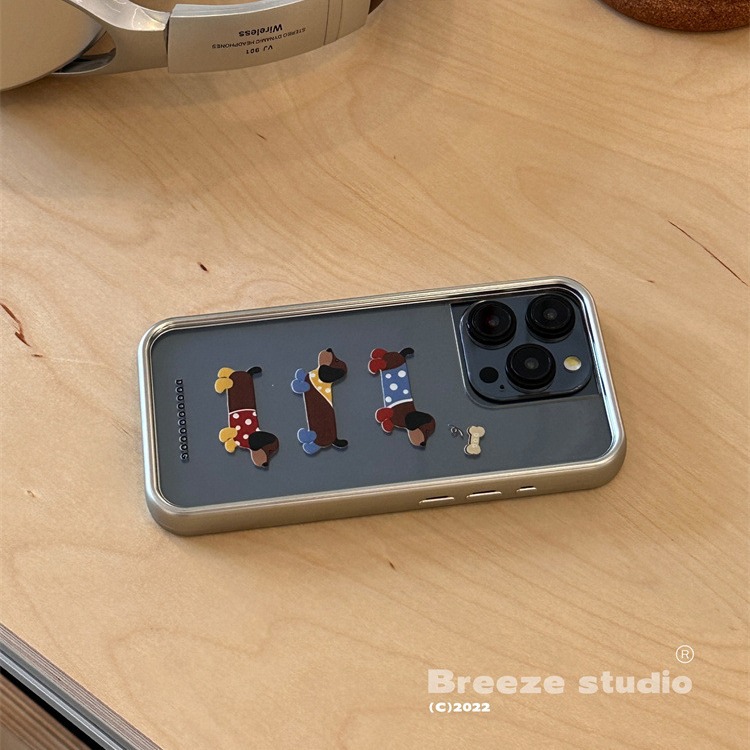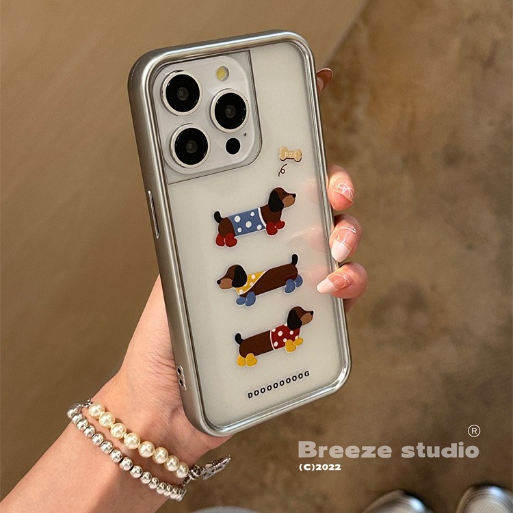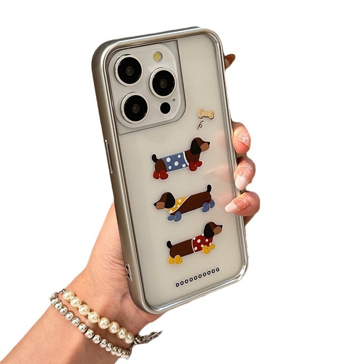 ins风卡通可爱腊肠狗适用iPhone15promax苹果14手机壳13电镀12软