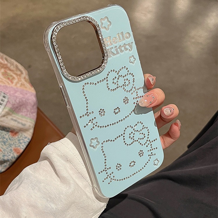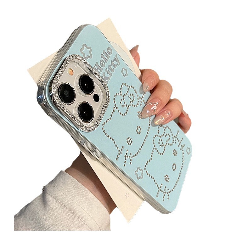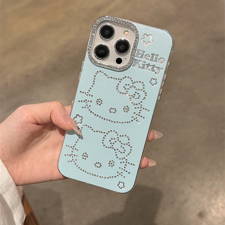 满钻蓝色凯蒂猫头像适用iPhone15promax苹果14手机壳13新款12全包