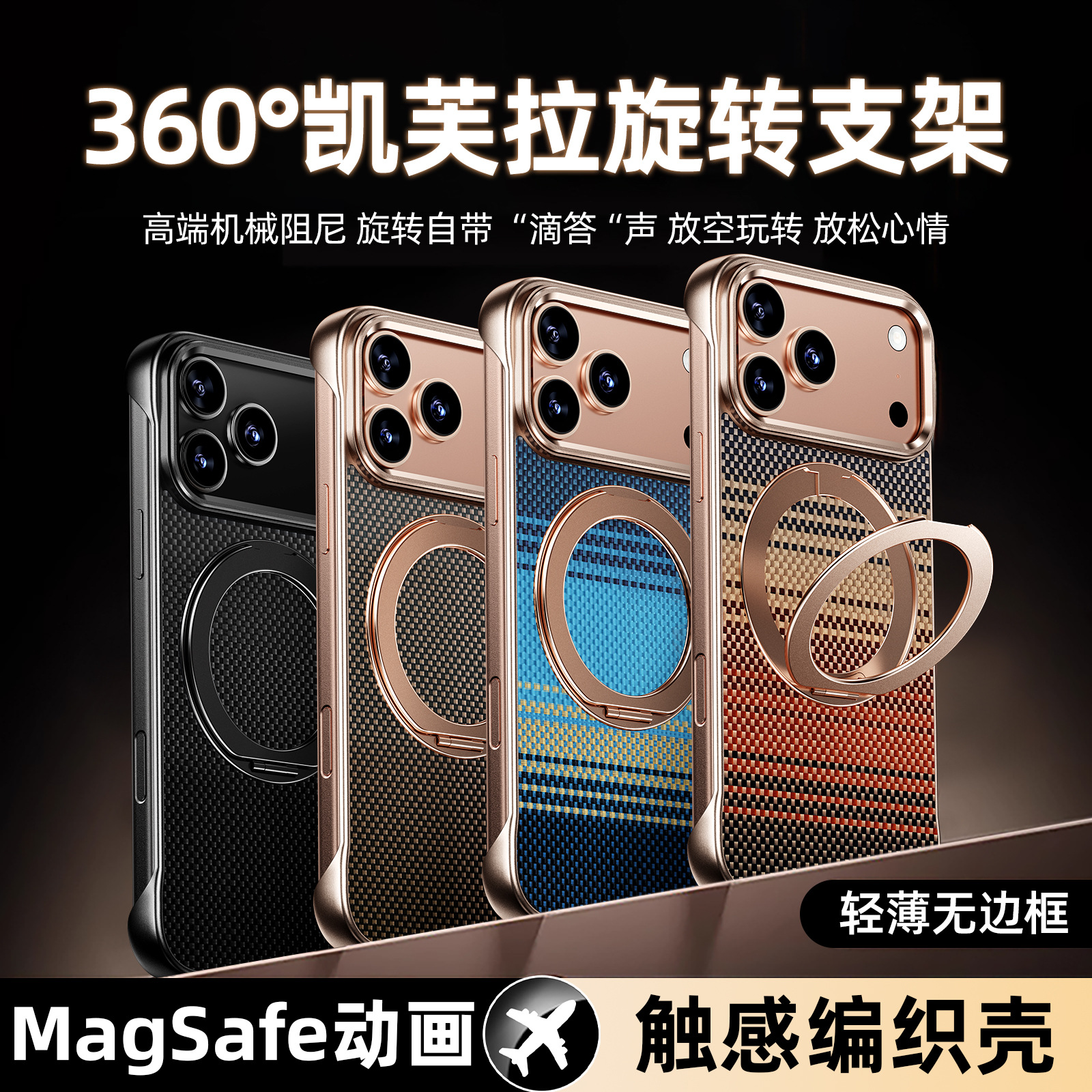 适用iPhone17ProMax手机壳苹果16凯夫拉纹理磁吸支架防摔磁吸壳