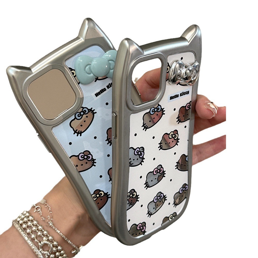 立体猫耳朵可爱蝴蝶结适用iPhone15promax苹果14手机壳13新款12女