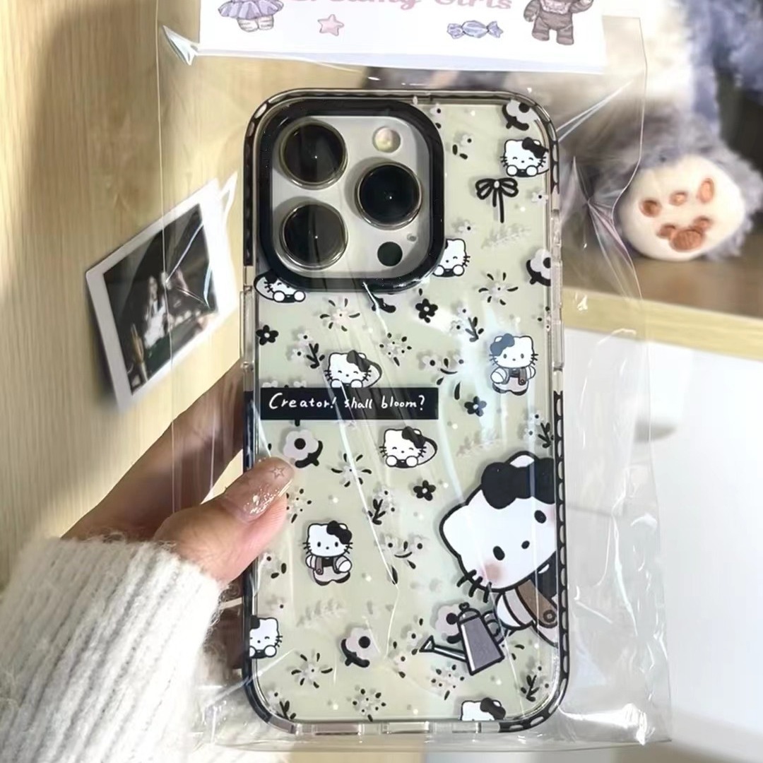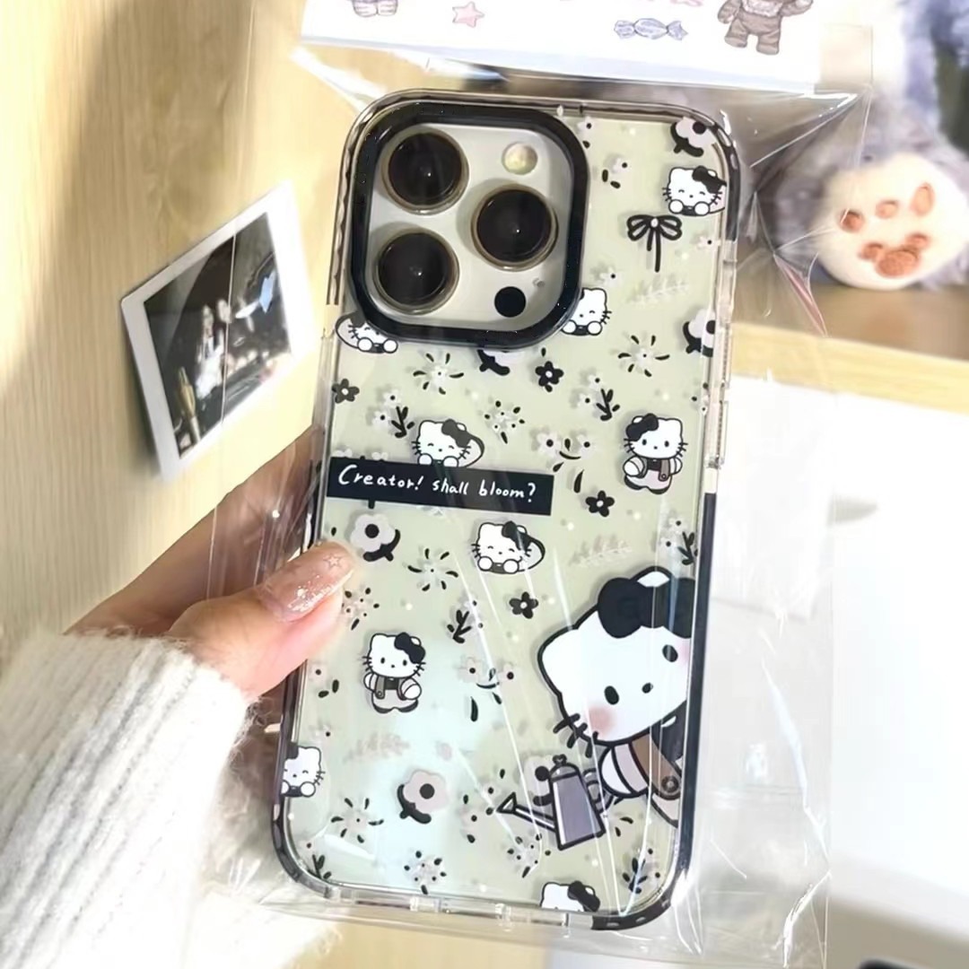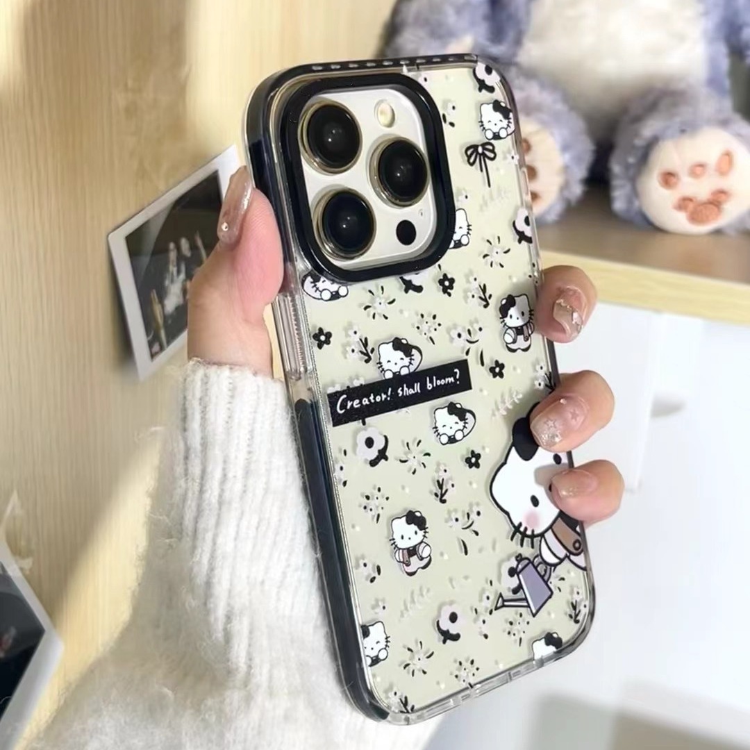 日韩可爱碎花kitty猫适用iPhone15promax苹果14手机壳13透明12软