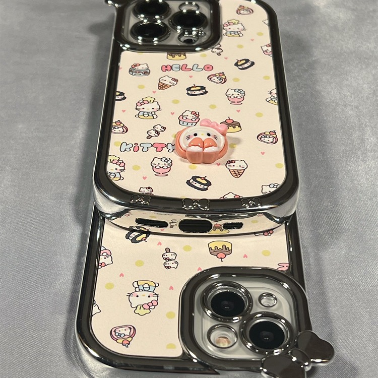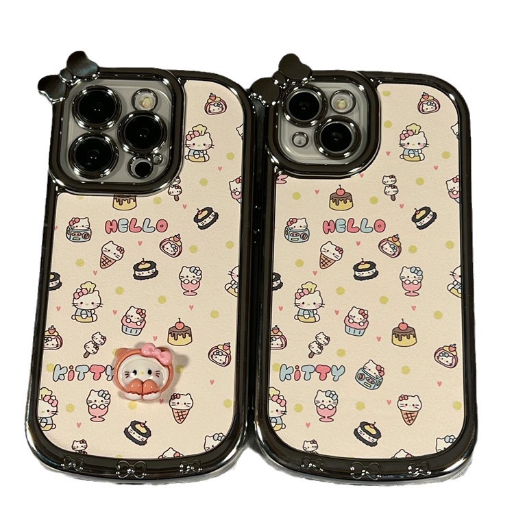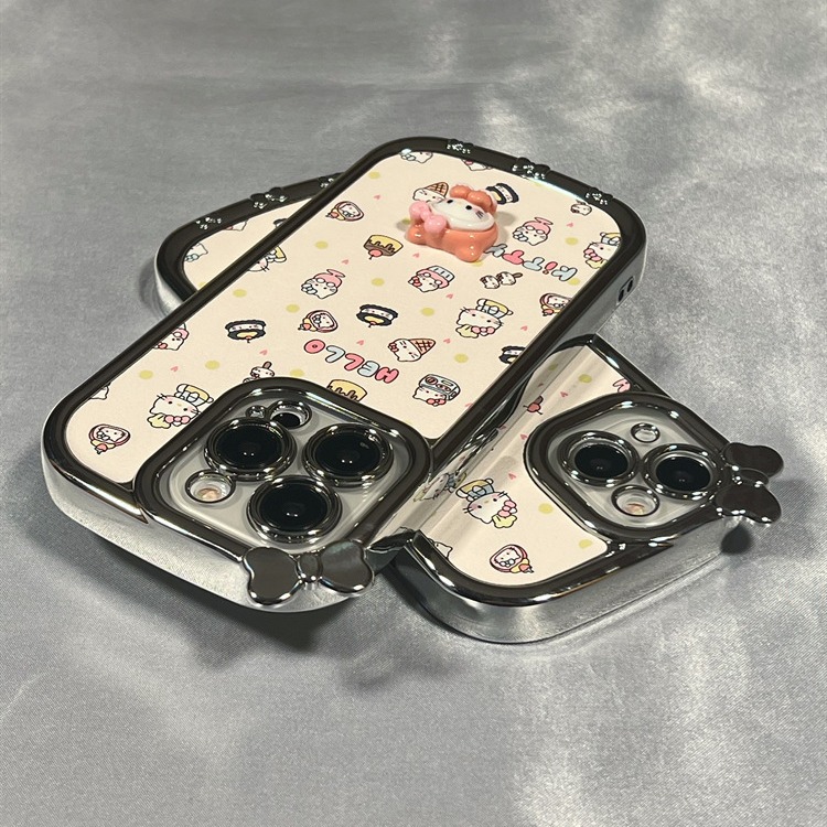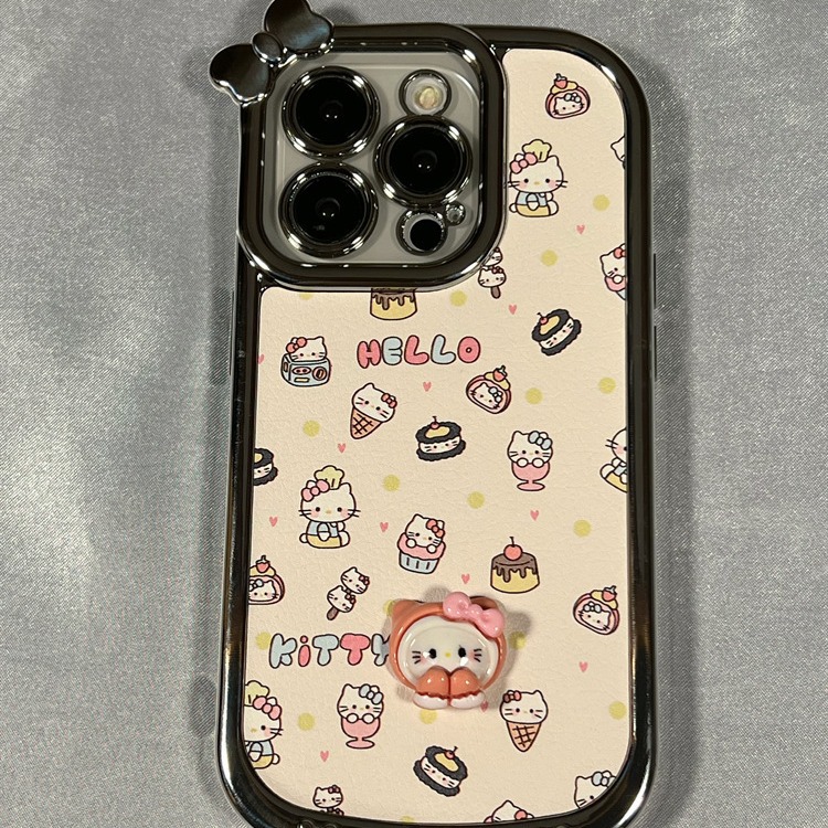 立体可爱卡通蝴蝶结kt猫适用iPhone15promax苹果14手机壳13电镀12
