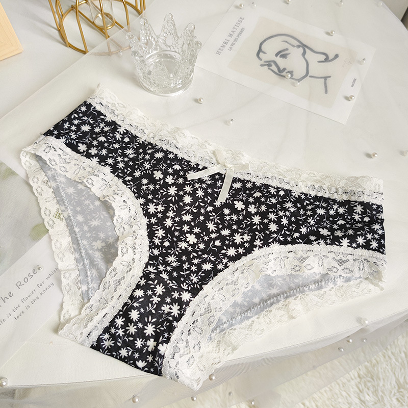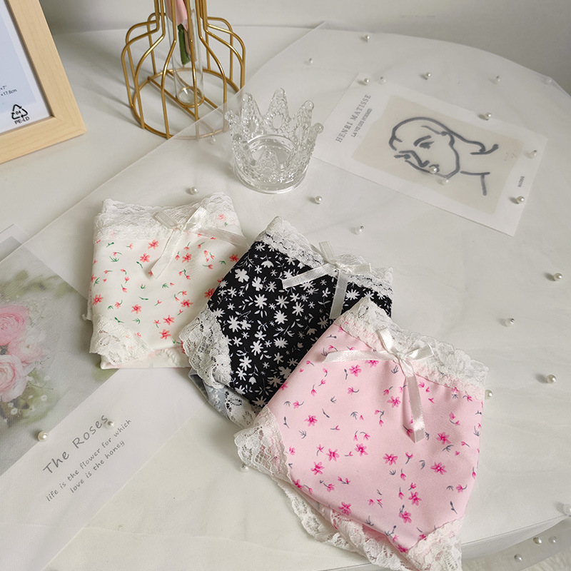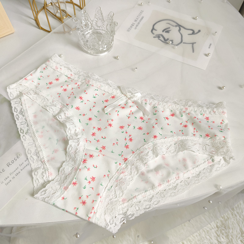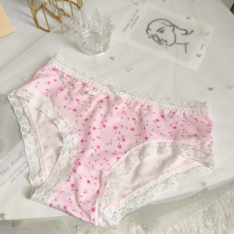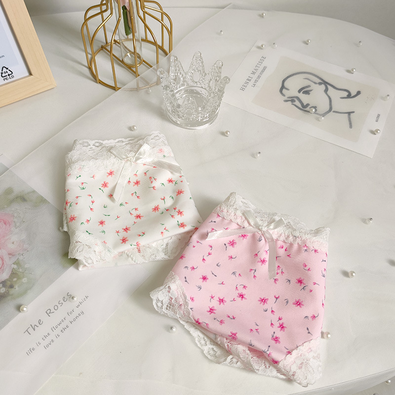 甜粉小花花*夏季日系可爱舒适蕾丝边冰丝少女生碎花甜美低腰内裤