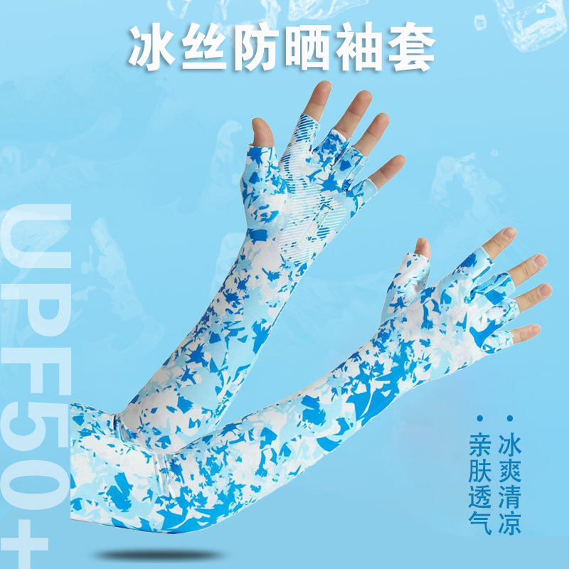 春夏季冰袖漏二指手套男女士防晒骑行长款冰丝袖套开车防滑手套男