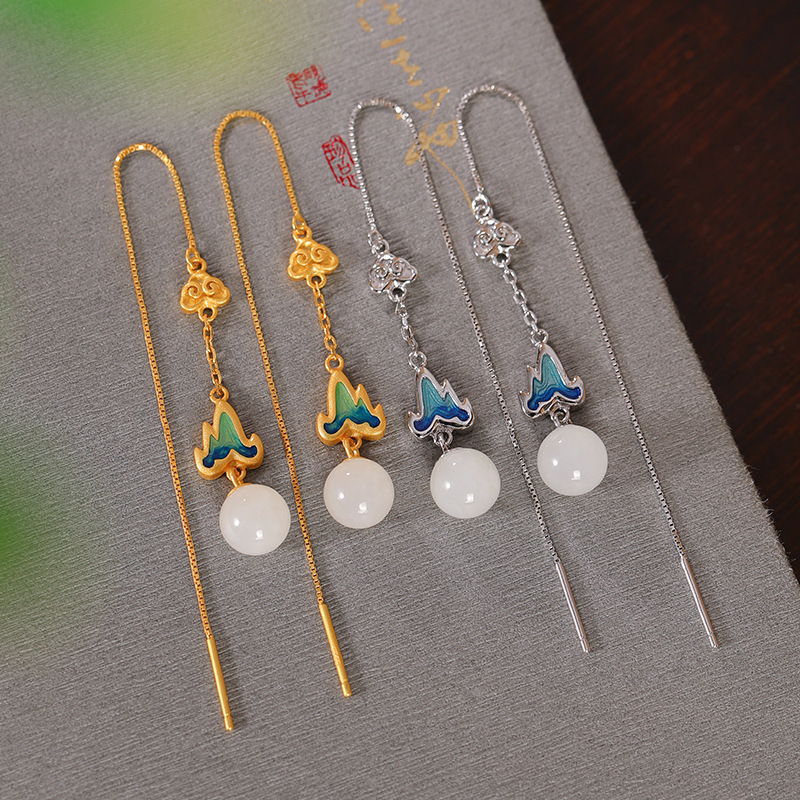 千里江山故宫耳环超仙新款纯银耳线和田耳坠复古风耳环女