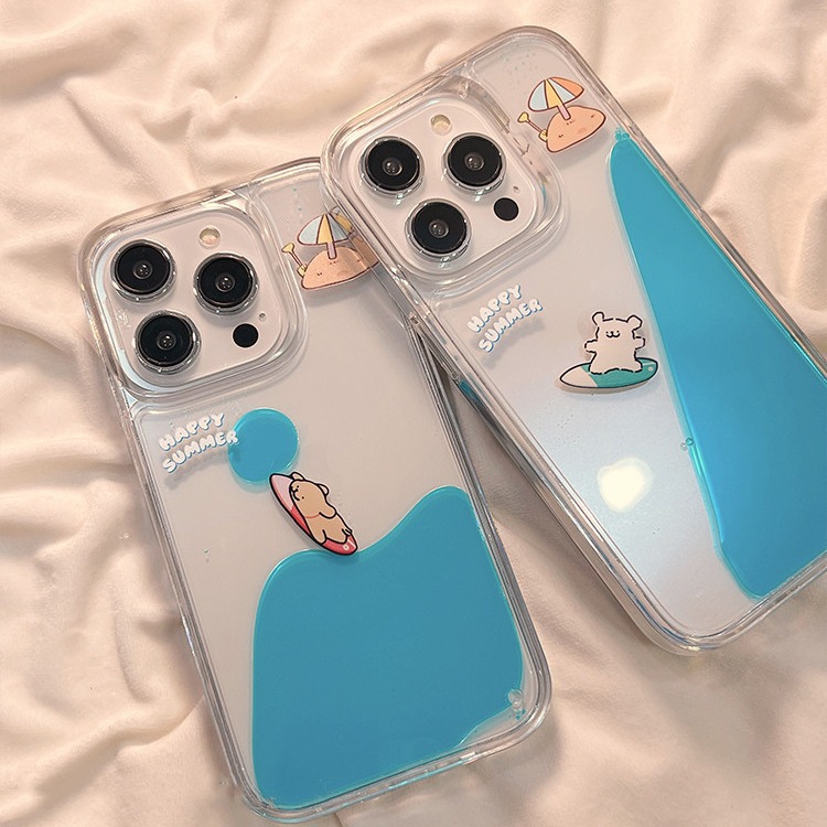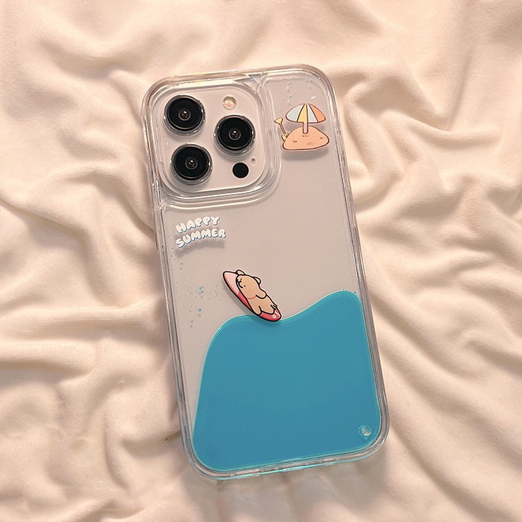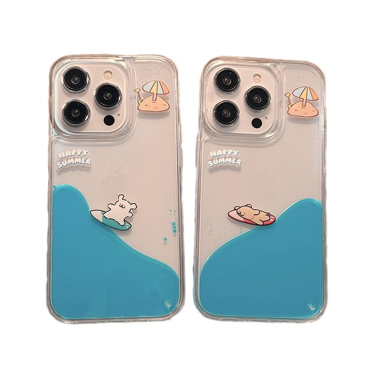 夏季可爱动物冲浪流动适用iPhone15promax苹果14手机壳13创意12女