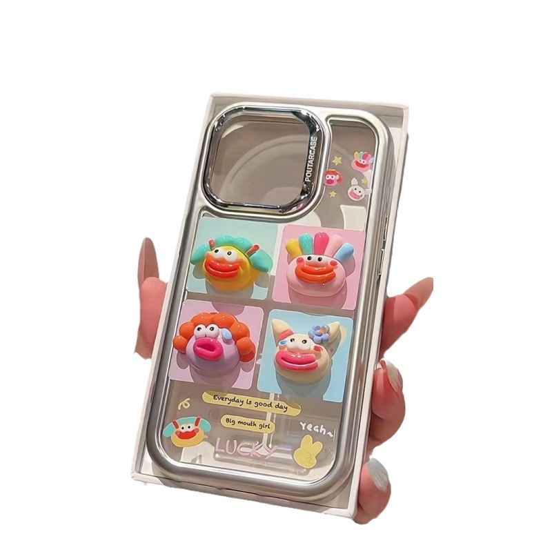ins风搞怪卡通头像适用iPhone15promax苹果14手机壳13透明12电镀