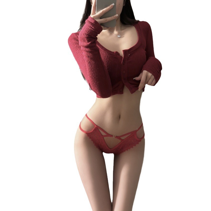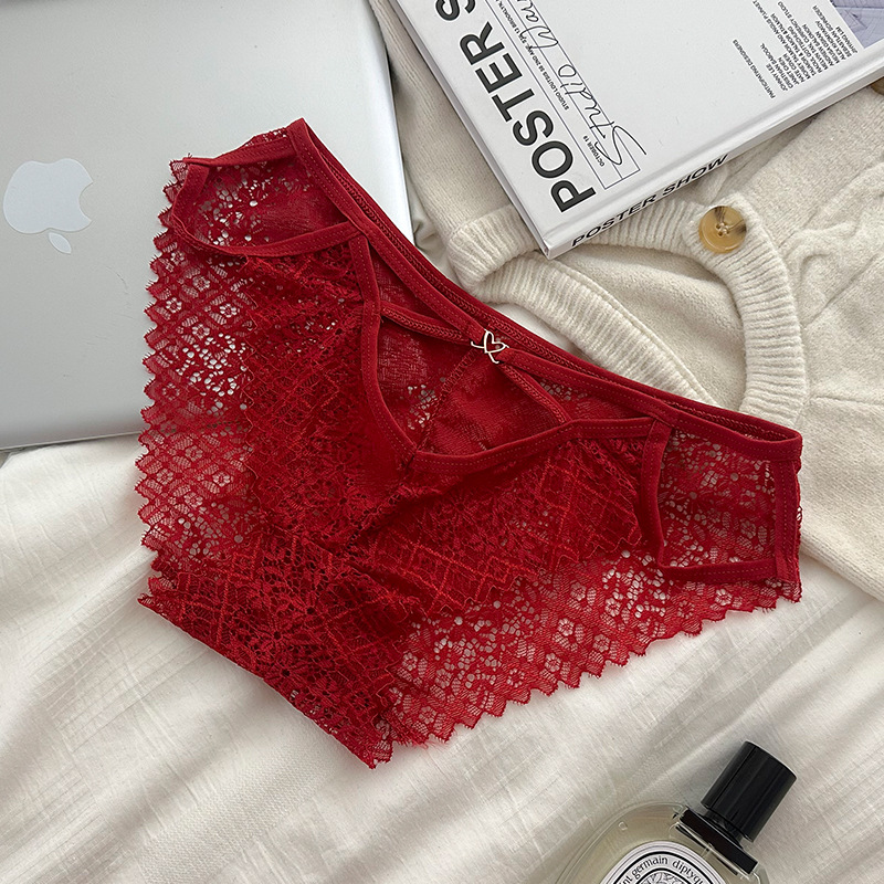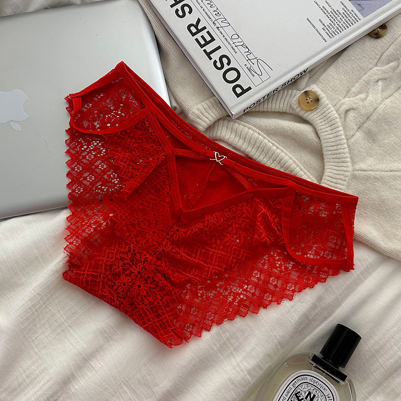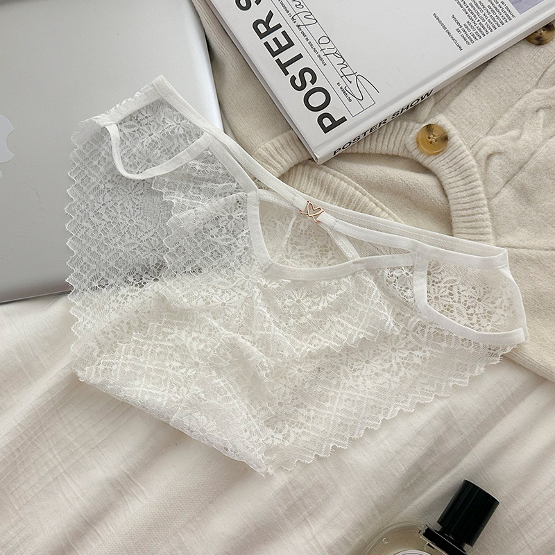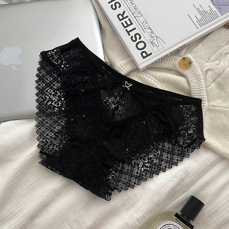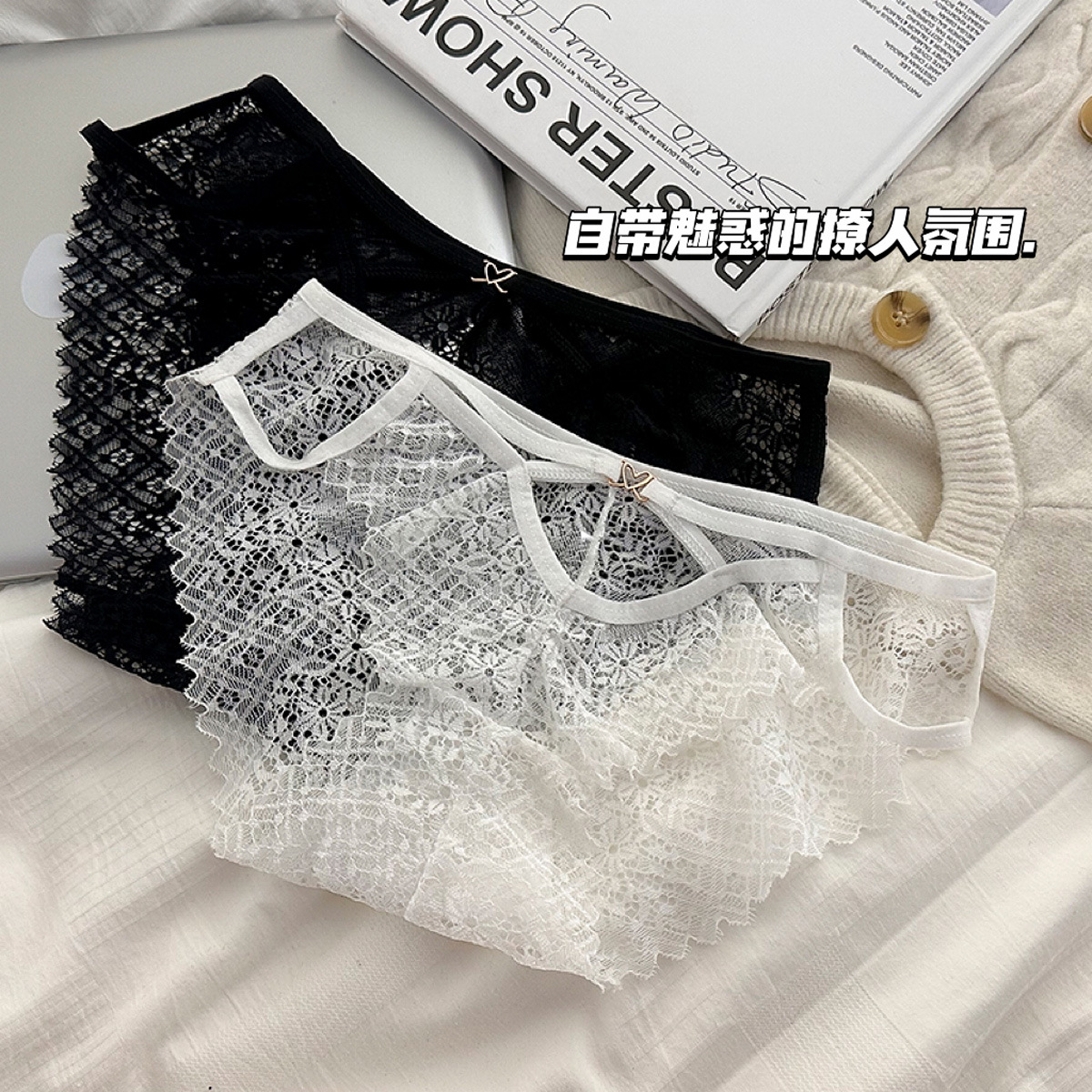 欧美镂空网纱诱惑透明蝴蝶结蕾丝边交叉低腰三角内裤女士纯欲性感