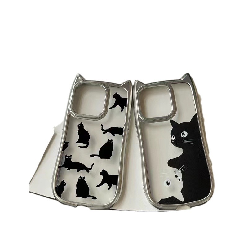 ins风电镀猫耳框满屏猫咪适用iPhone15promax苹果14手机壳13软12