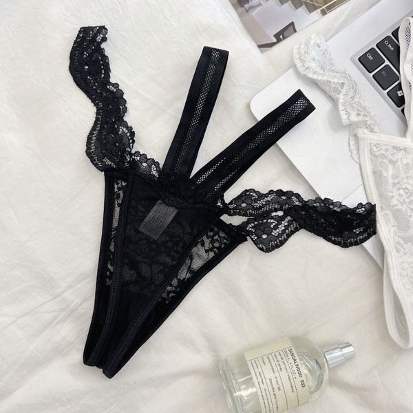 辣妹曲线~欧美性感蕾丝交叉带网纱低腰纯欲无痕情调薄款三角裤女