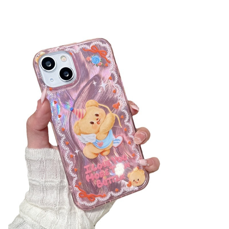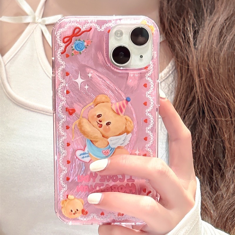 少女软萌可爱卡通小熊适用iPhone15promax苹果14手机壳13羽纱12软