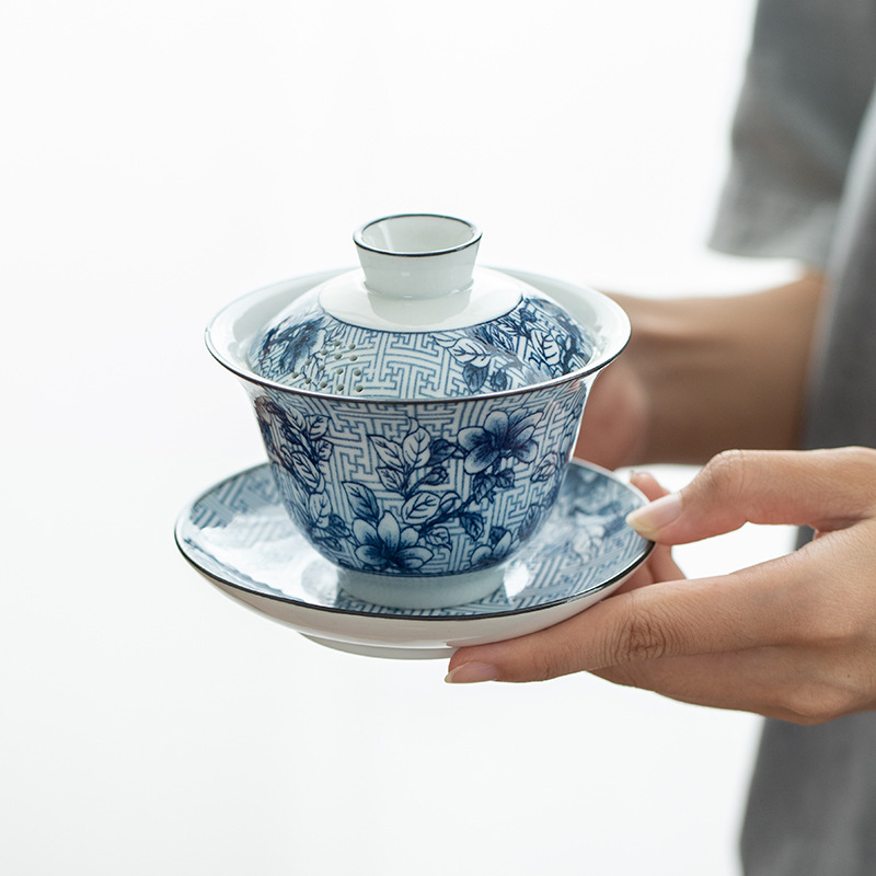 盖碗家用陶瓷汝窑抹茶碗中式复古开片可养三才功夫茶具敬茶器