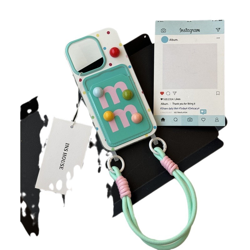 可爱绿色立体m豆卡包挂绳适用iPhone15promax苹果14手机壳13软12