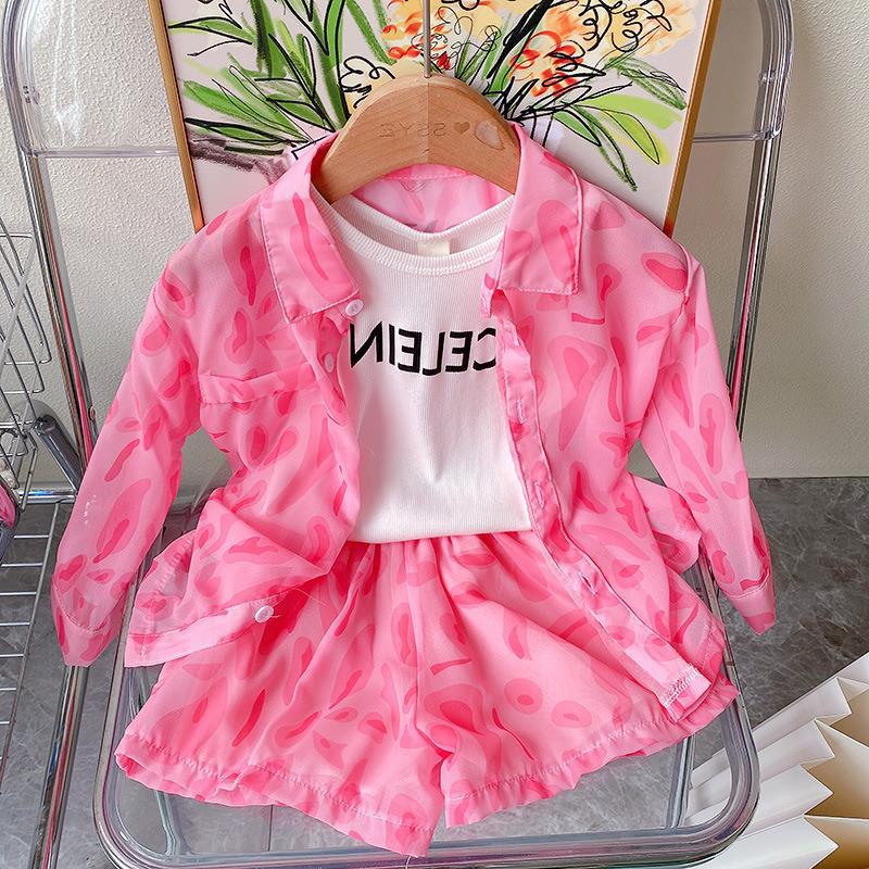 外贸儿童套装2025夏装新品女宝宝豹纹防晒长袖两件套