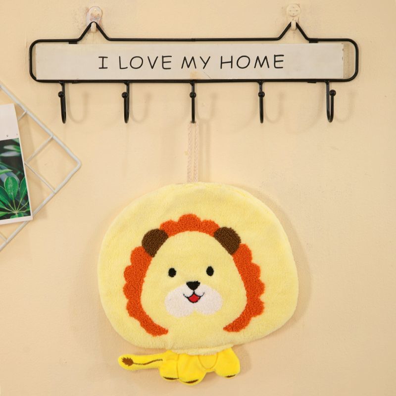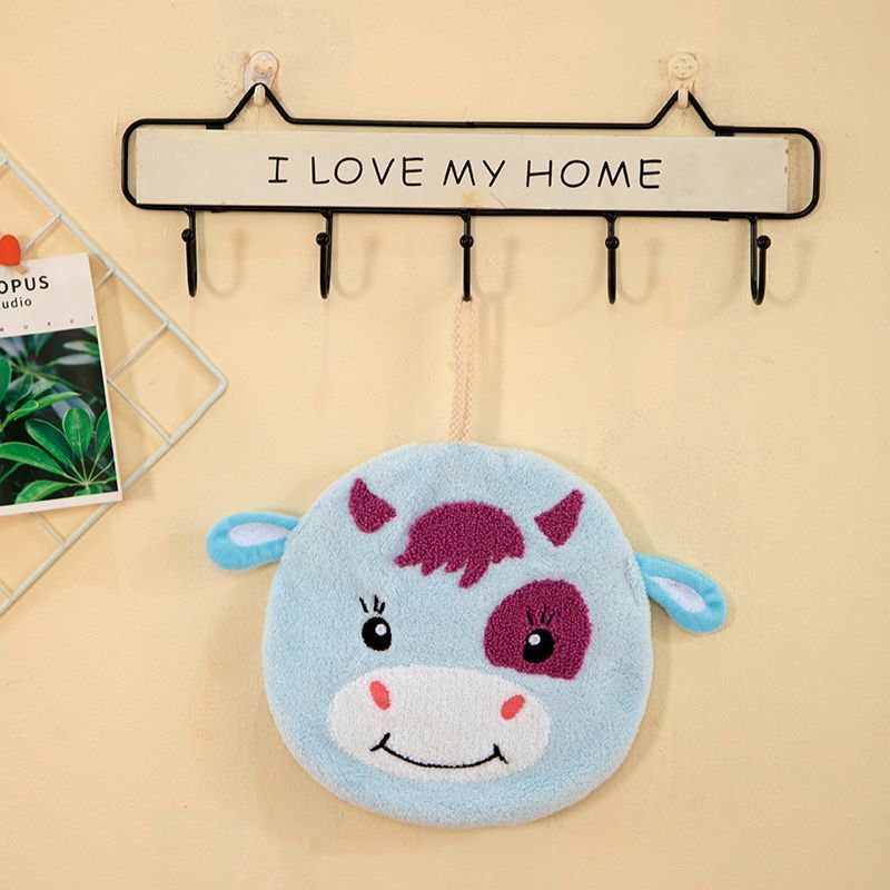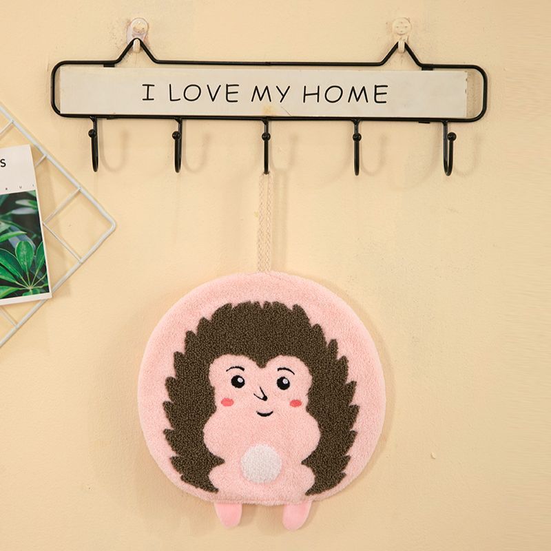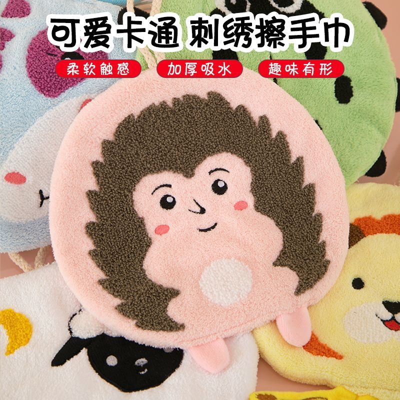 卡通珊瑚绒擦手巾可挂式可爱卫生间厨房吸水巾儿童创意萌宠小毛巾