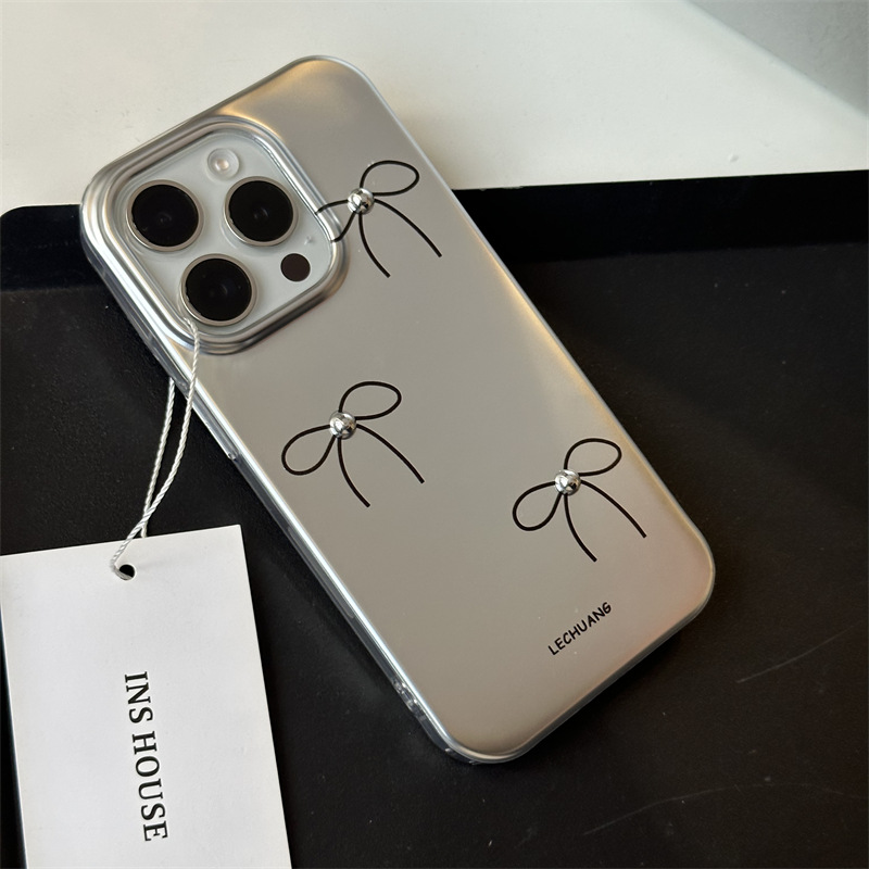 小众ins高级银色蝴蝶结适用iPhone15promax苹果14手机壳13立体12