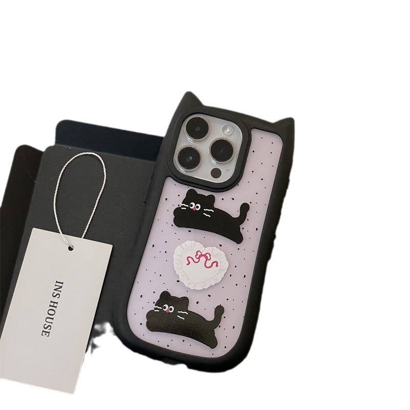 立体猫咪耳朵卡通黑色适用iPhone15promax苹果14手机壳13新款12女