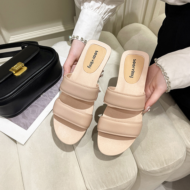 拖鞋女夏外穿ins平底露趾网红凉拖鞋海边度假slippers批发一字拖