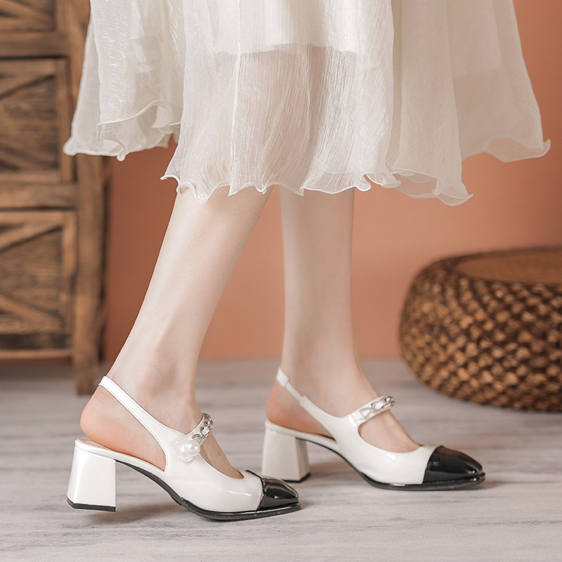 牛皮包头后空凉鞋外穿百搭女鞋新款高跟凉鞋女