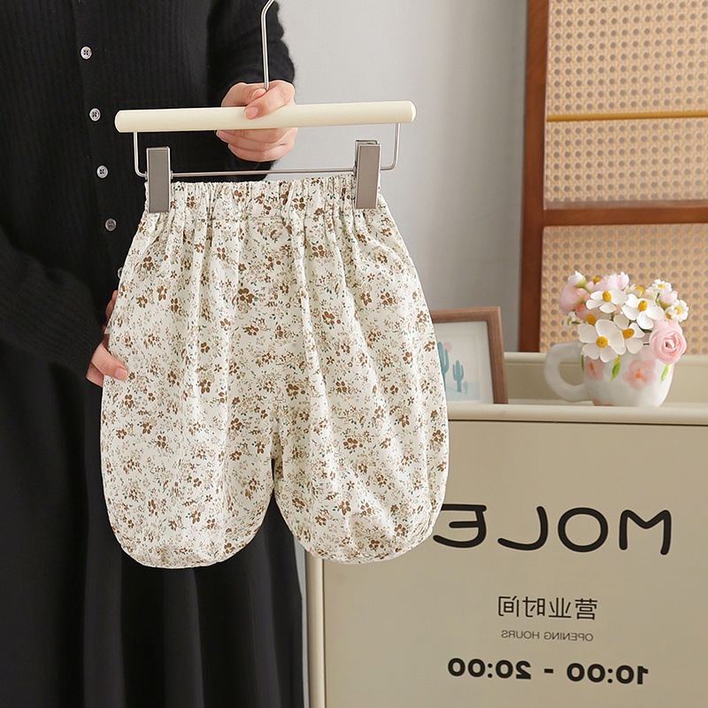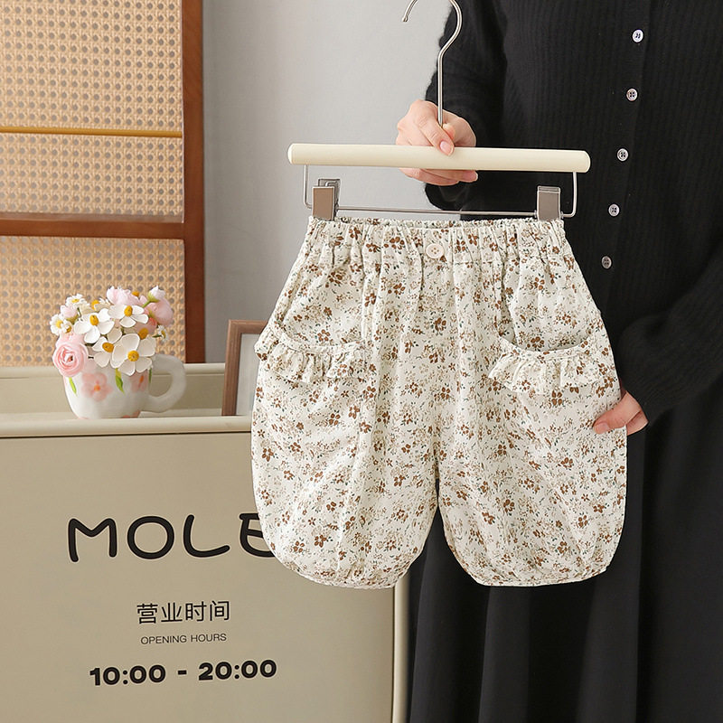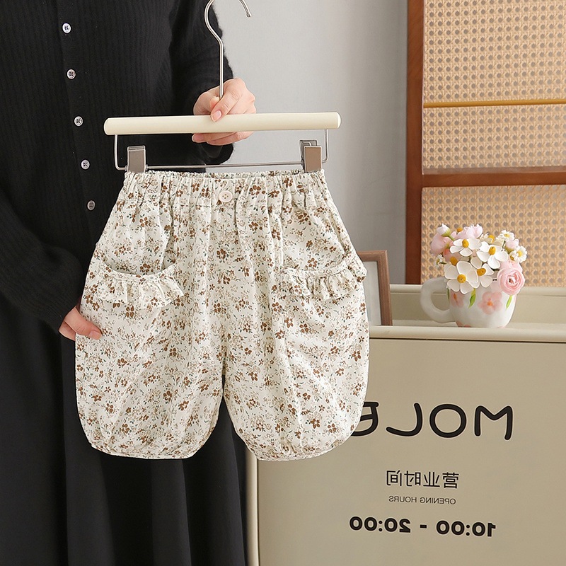 女童夏装短裤宝宝洋气儿童个性潮牌韩版网红碎花灯笼裤甜美五分裤