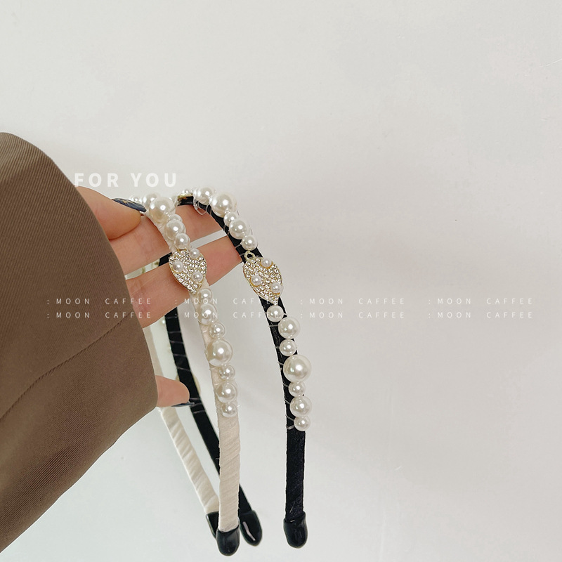 法式珍珠水钻间隔设计感气质发箍柔纱包边网红个性发卡头箍发夹新