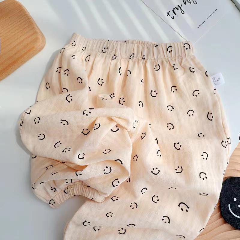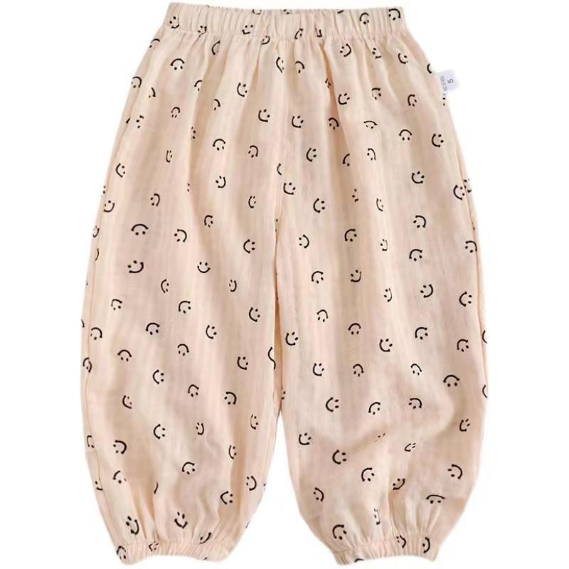 男女童夏装休闲裤宝宝洋气儿童防个性潮牌韩版森系笑脸面纱蚊长裤