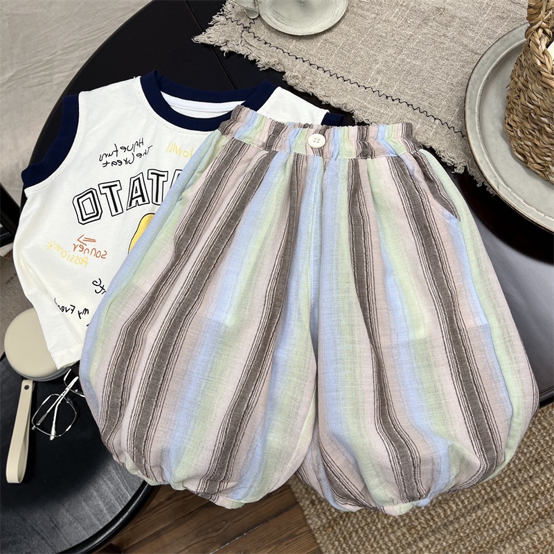 男女童夏装休闲裤防宝宝洋气儿童个性潮韩版拼色条纹束脚蚊灯笼裤