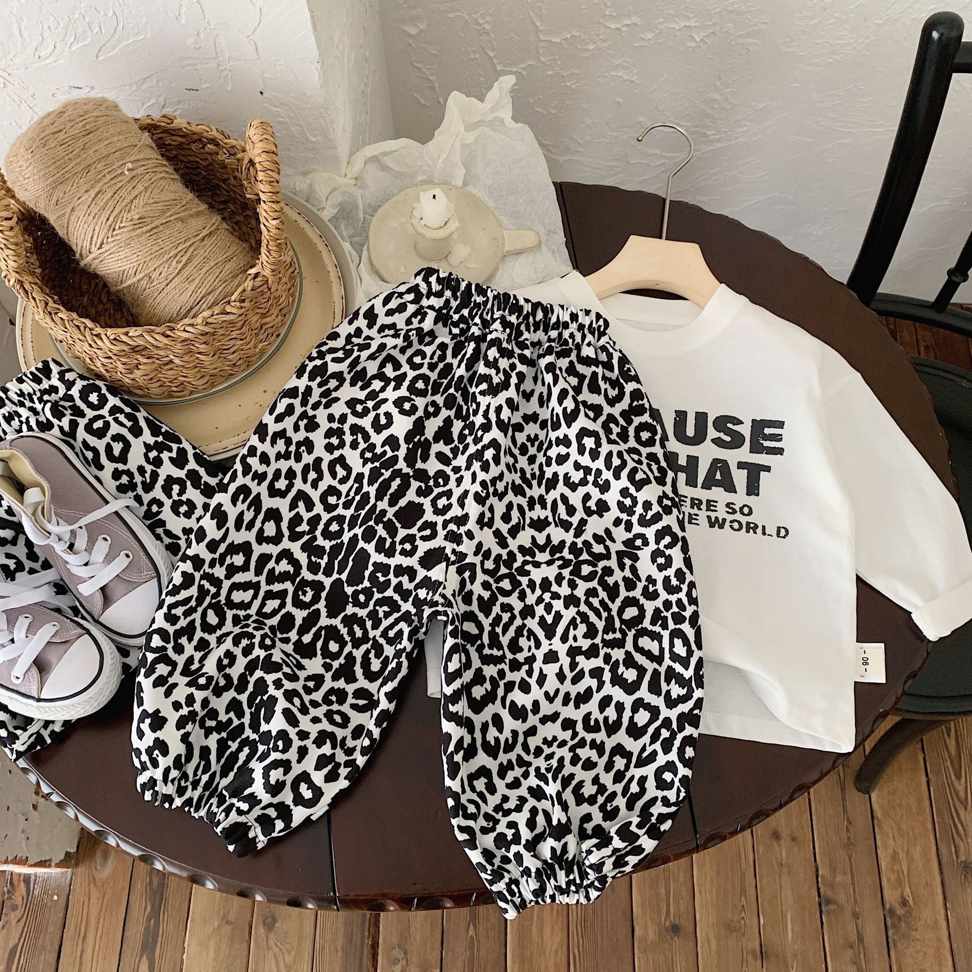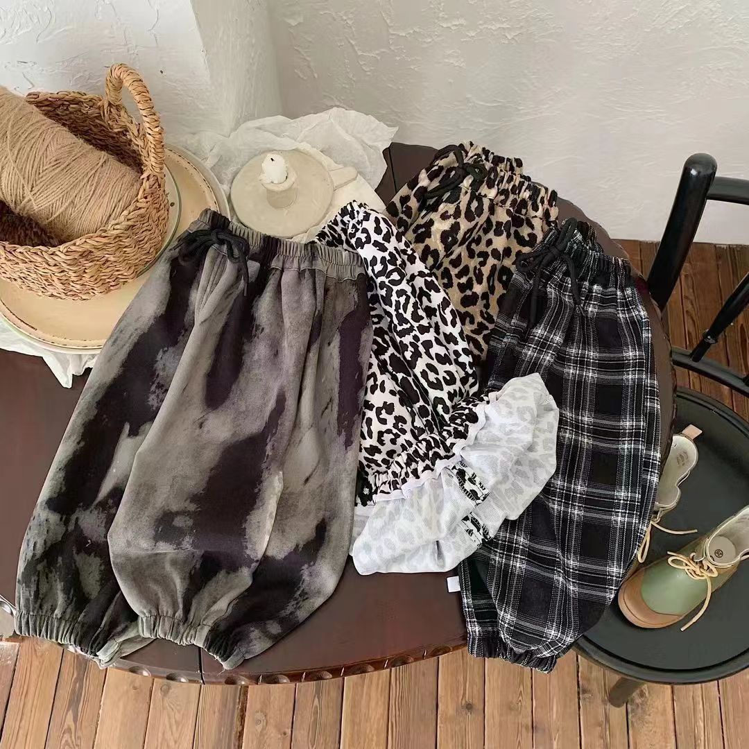 夏季男女童装休闲裤宝宝洋气儿童个性潮牌韩版豹纹格子束脚灯笼裤