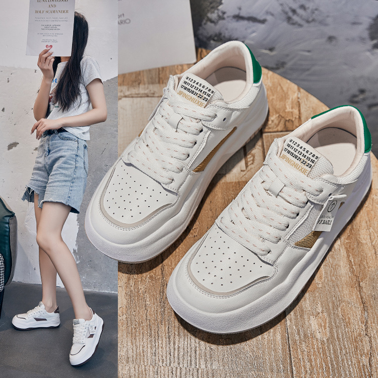 小白鞋女春季新款百搭女鞋网面透气拼色厚底休闲鞋板鞋潮