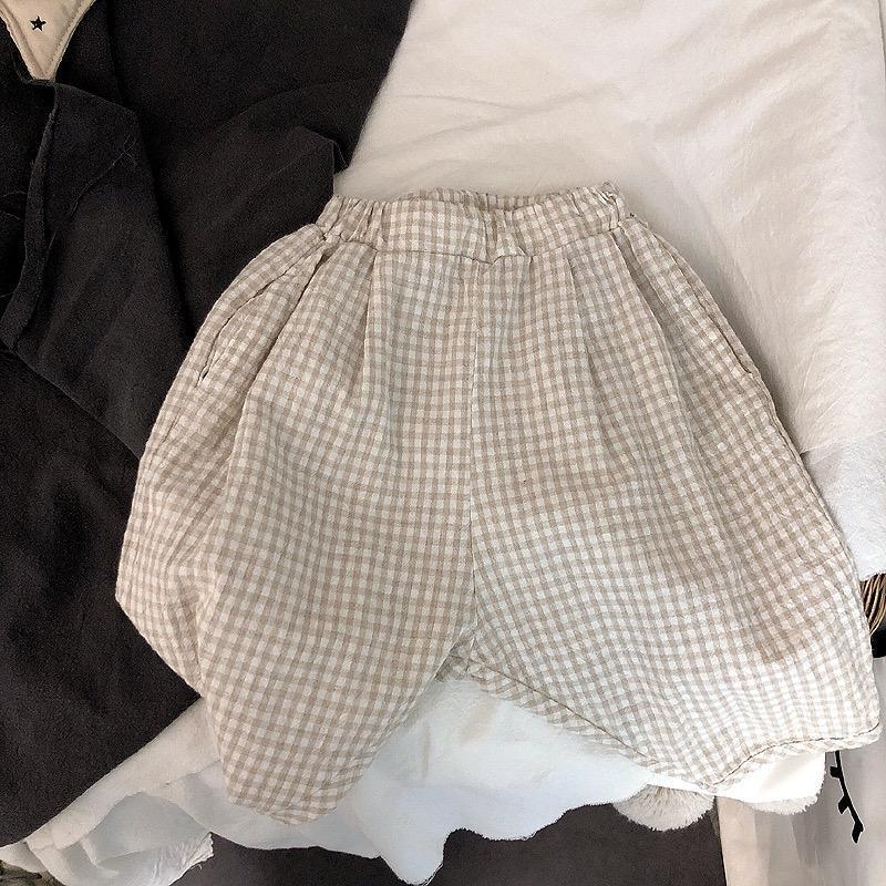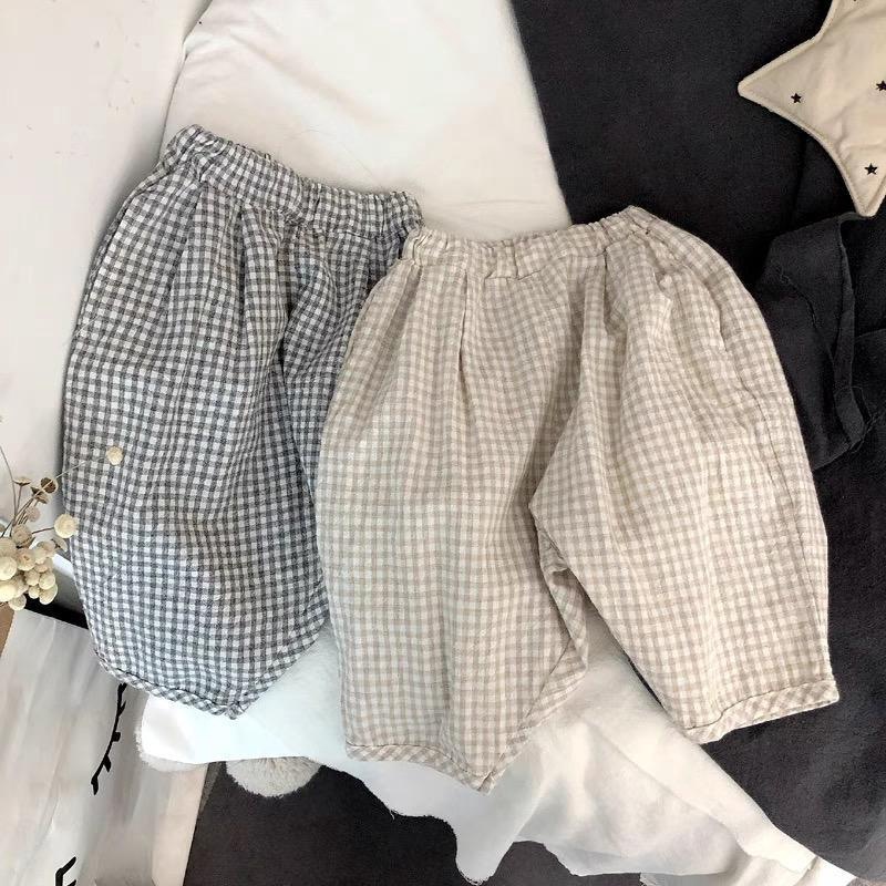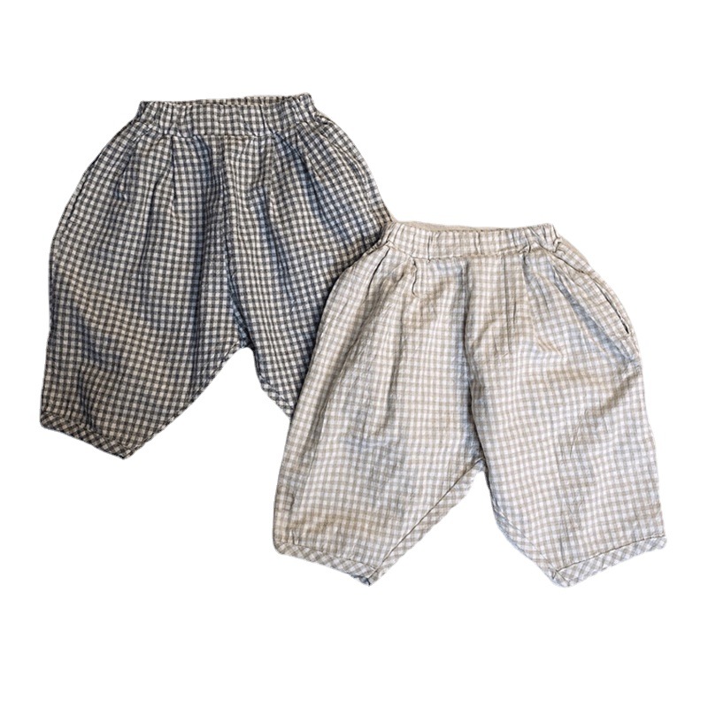 男女童夏装休闲裤宝宝洋气儿童个性潮网红韩版森系格子七分哈伦裤