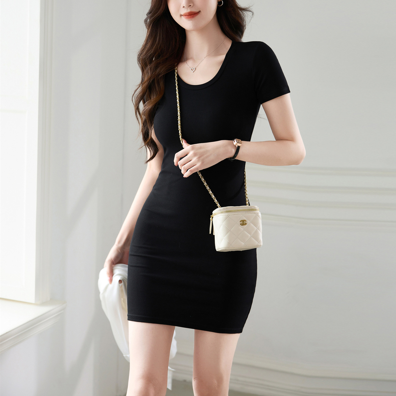 【用好料】纯棉短袖连衣裙女夏2025新款圆领内搭性感辣妹包臀短裙