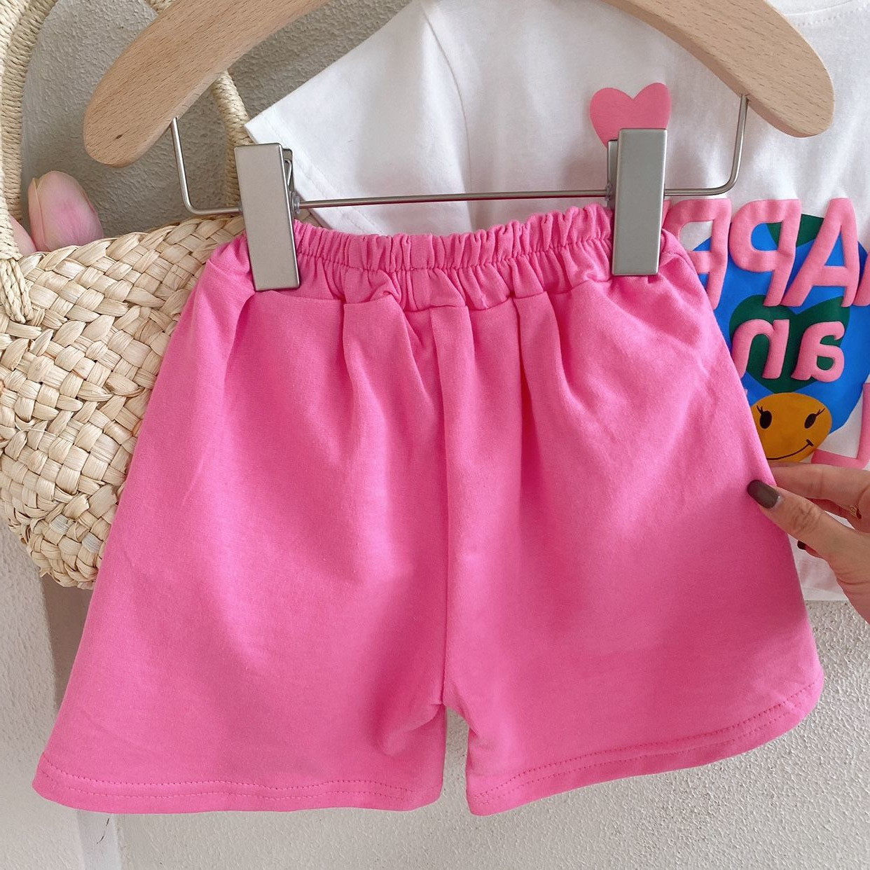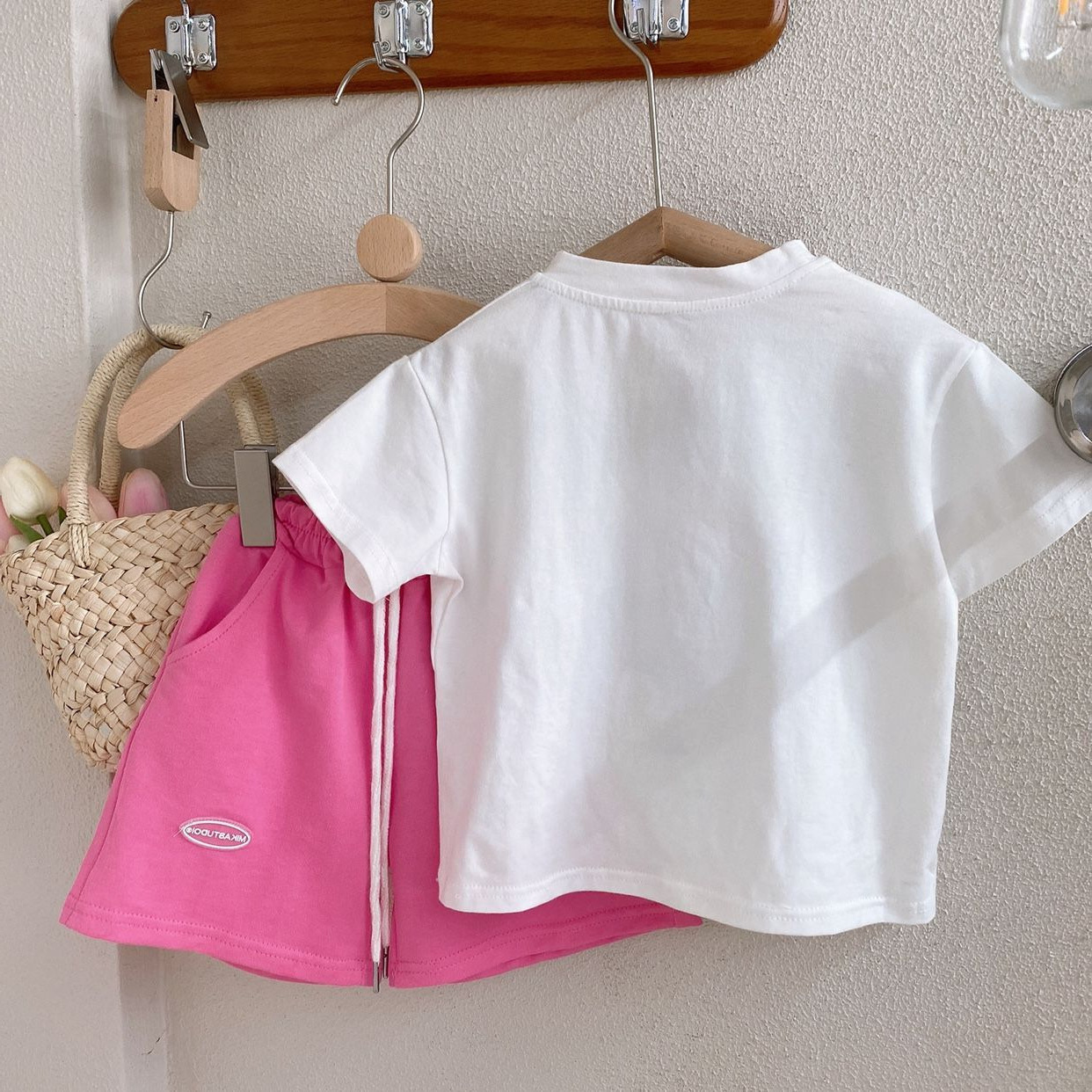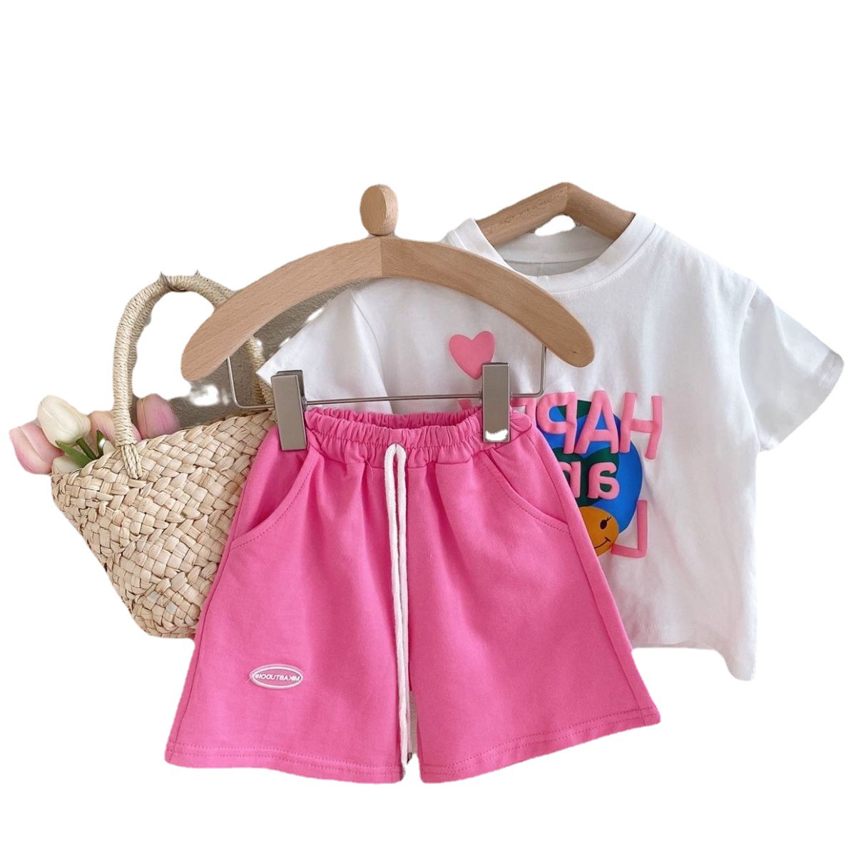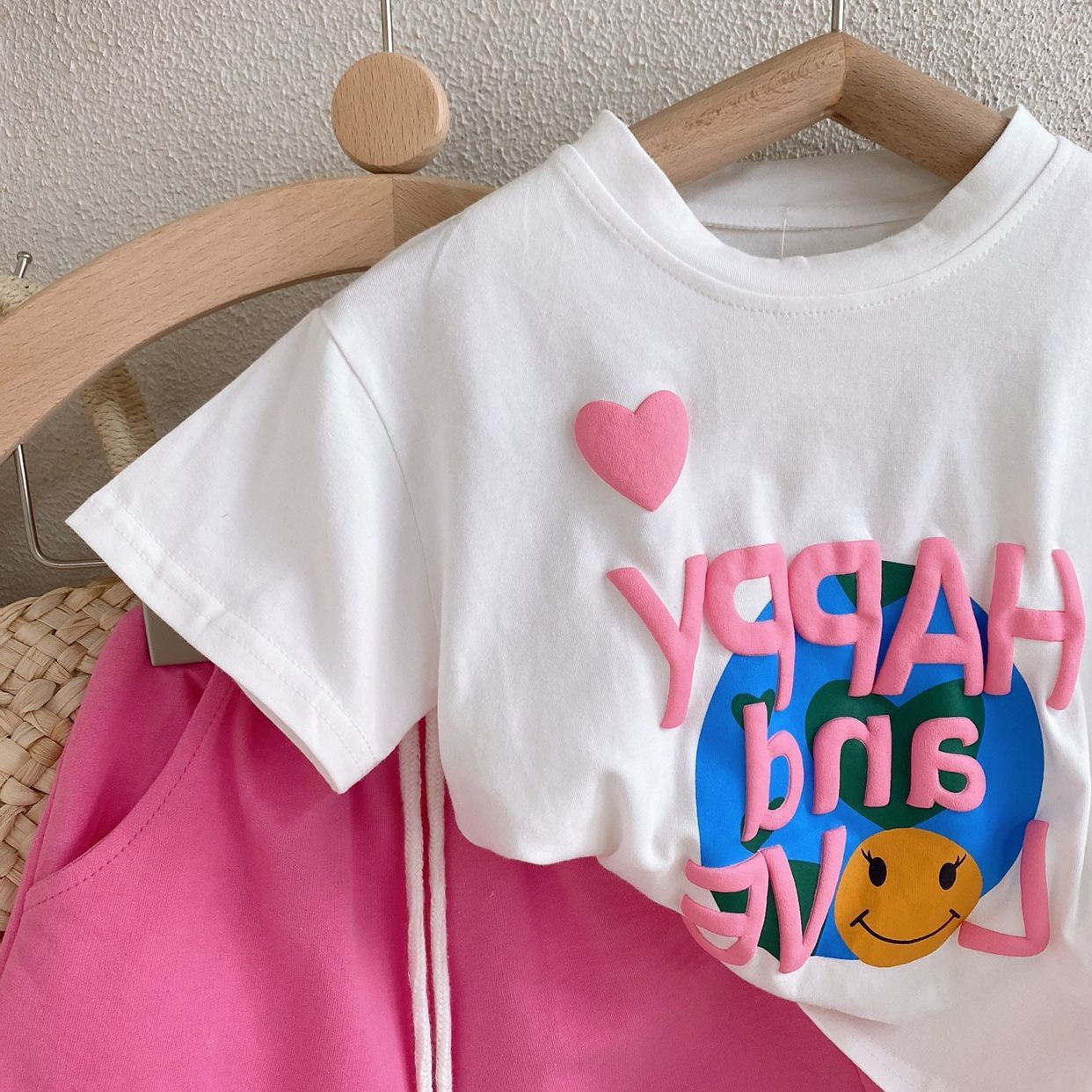 夏季女童套装宝宝洋气儿童个性潮韩版爱心字母T恤运动短裤两件套