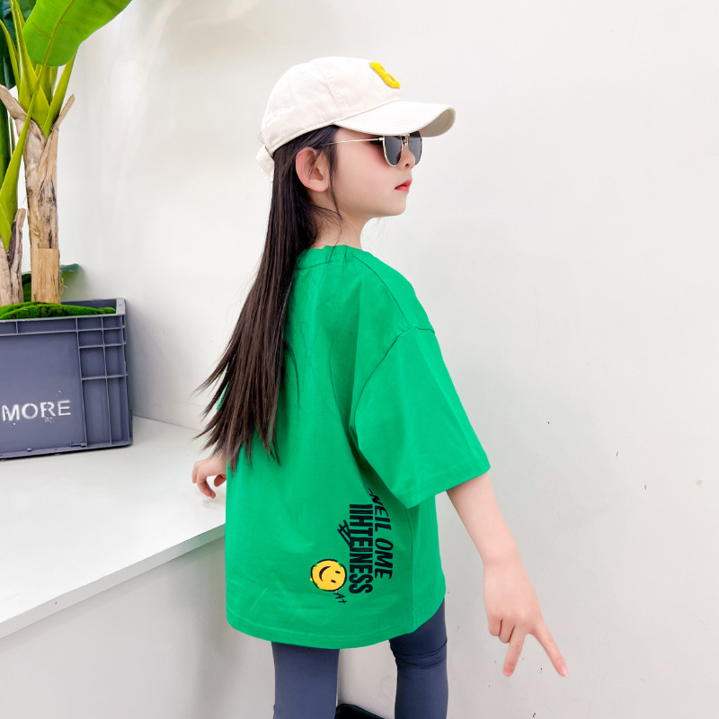 女童纯棉短袖打底衫夏装笑脸童装休闲儿童t恤女孩宽松半截袖上衣