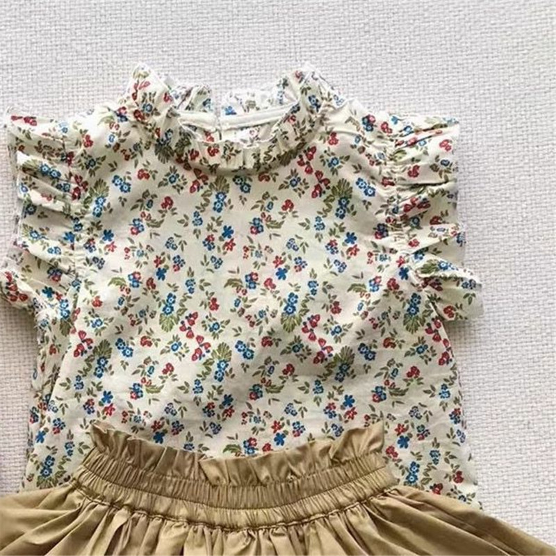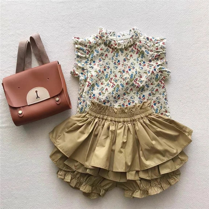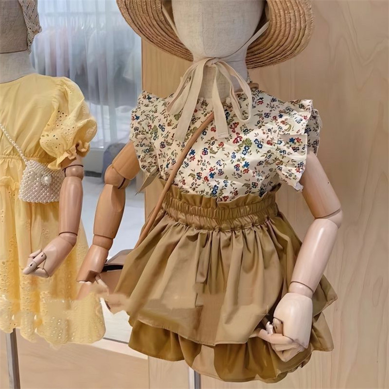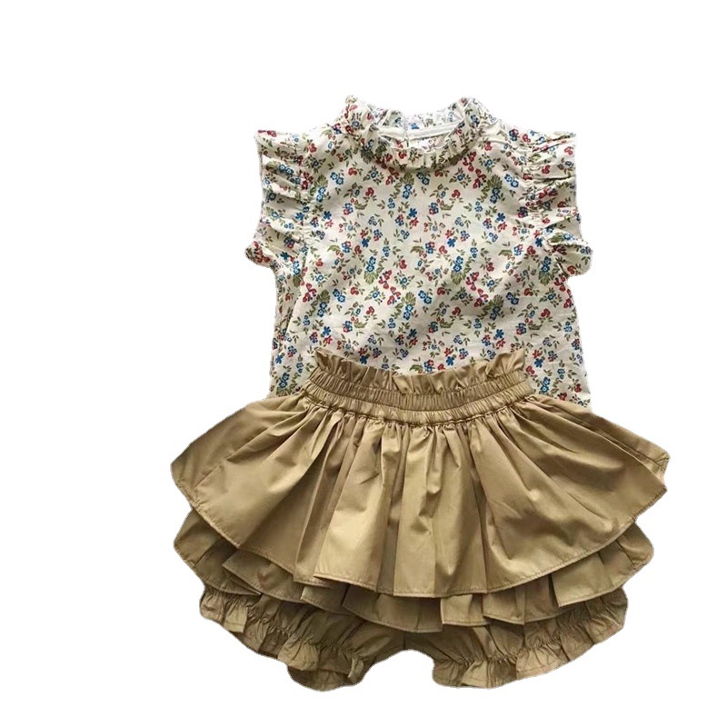 夏季女童套装宝宝洋气儿童个性潮牌韩版网红碎花T恤衬衫蛋糕裙裤