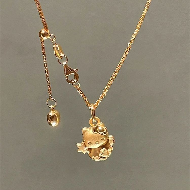 新款黄金色Hello星星猫吊坠项链女款3D立体甜美百搭高级感Kitty锁