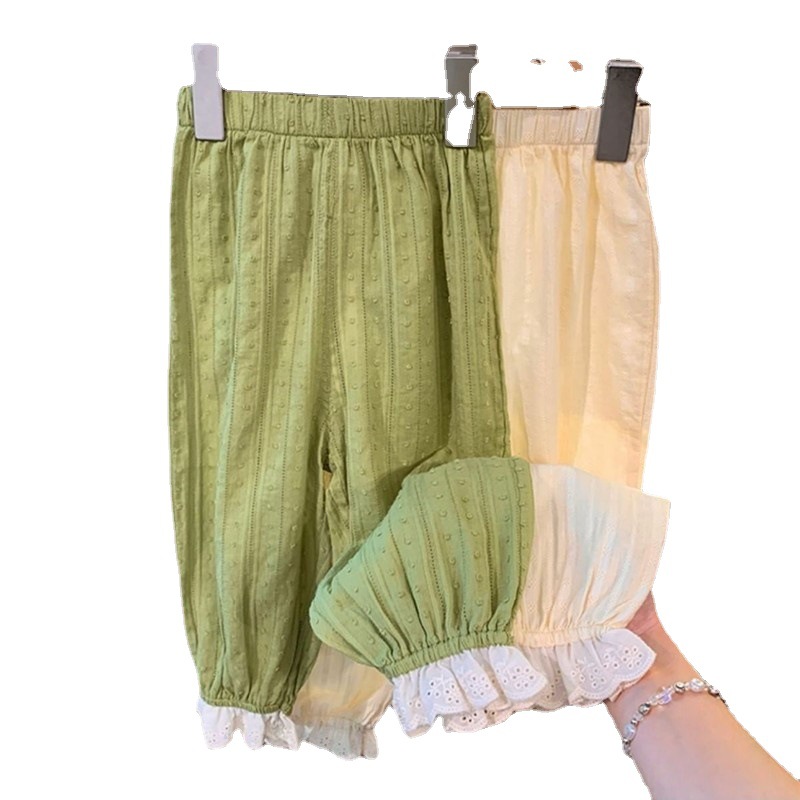 女童夏装休闲裤宝宝洋气儿童个性潮牌韩版文艺森系蕾丝花边防蚊裤