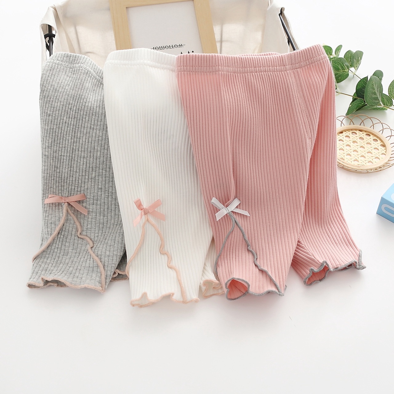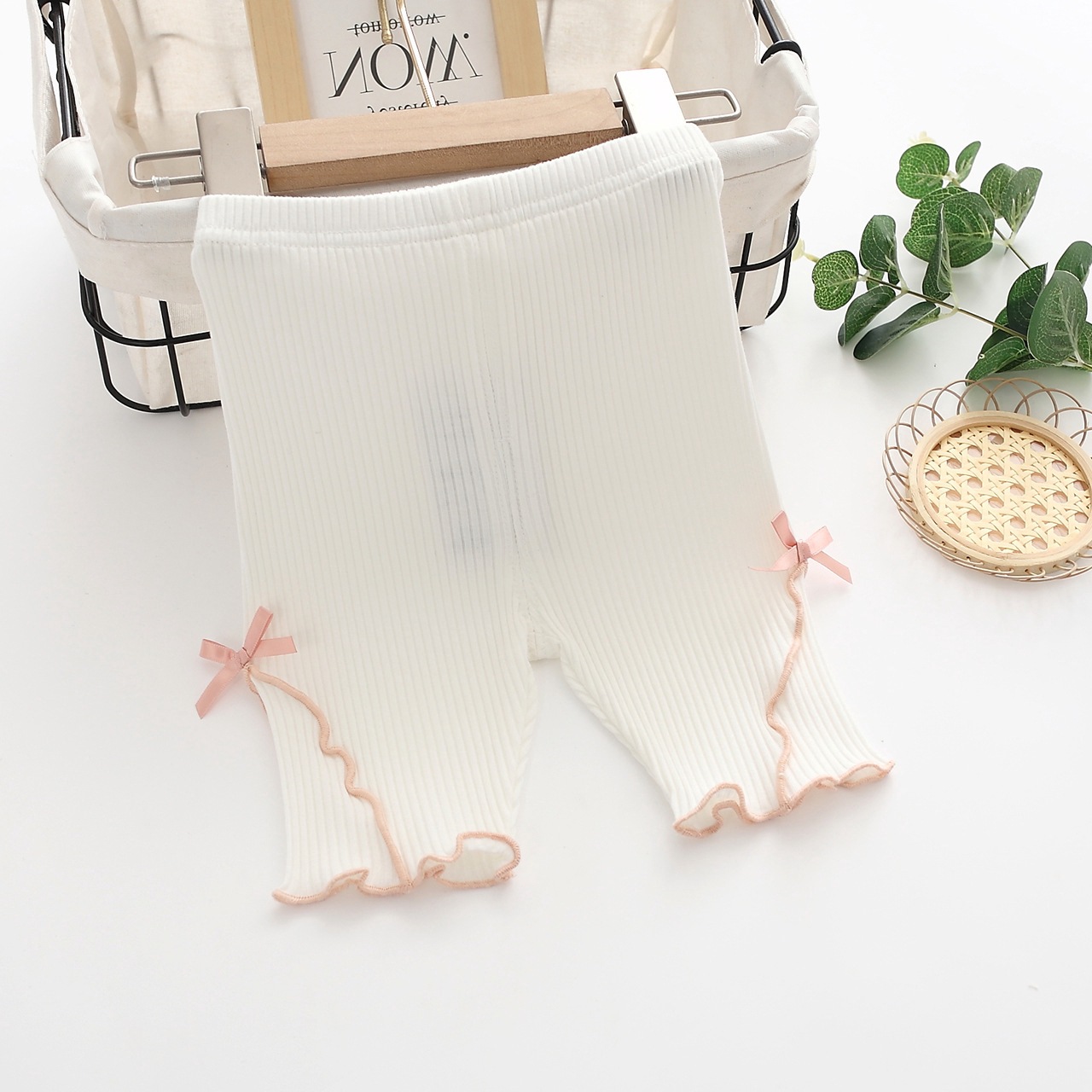 女童夏装打底裤宝宝洋气儿童个性潮牌韩版木耳边蝴蝶结弹力七分裤