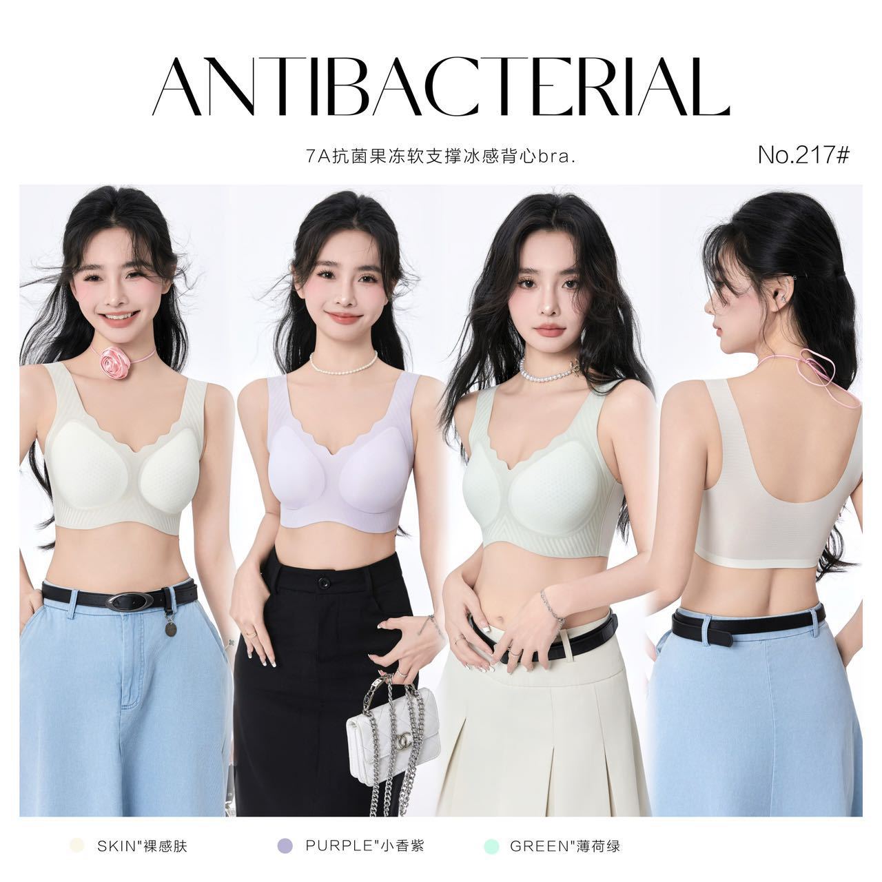 217# 7A抗菌3D果冻软支撑冰感背心bra超薄冰肌透气蜂巢杯解压美背