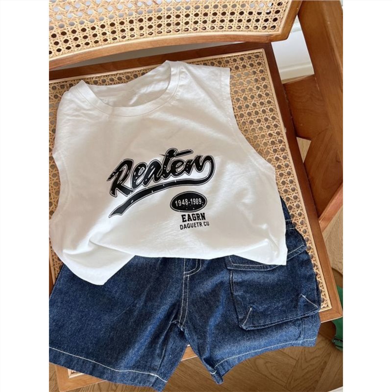纯棉男童薄款无袖背心T恤儿童夏韩版宝宝中小童洋气上衣字母印花