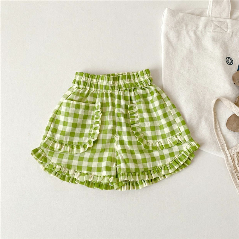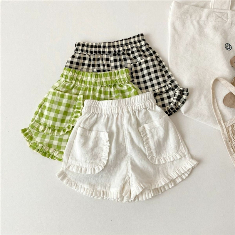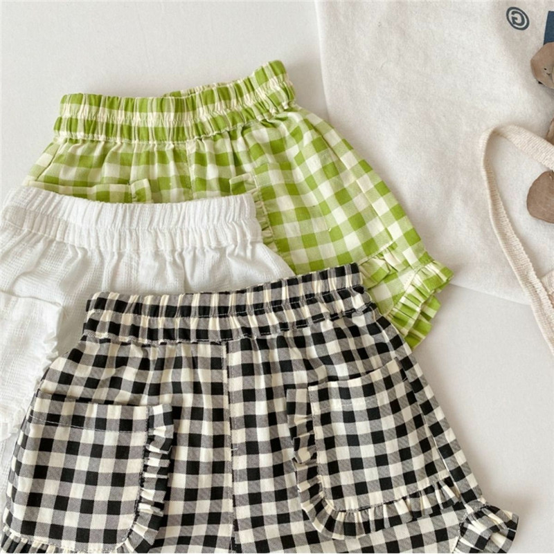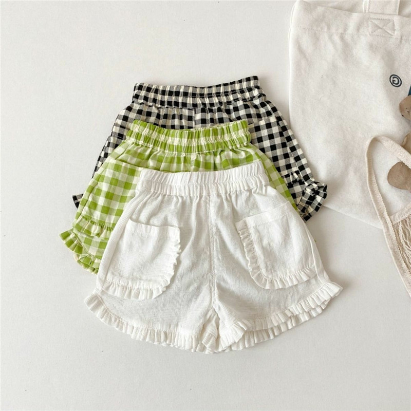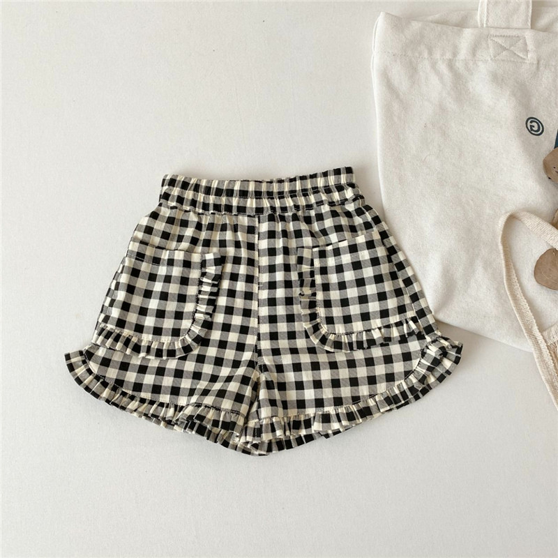 女童夏装短裤宝宝网红洋气儿童个性潮牌韩版格子木耳花边百搭热裤