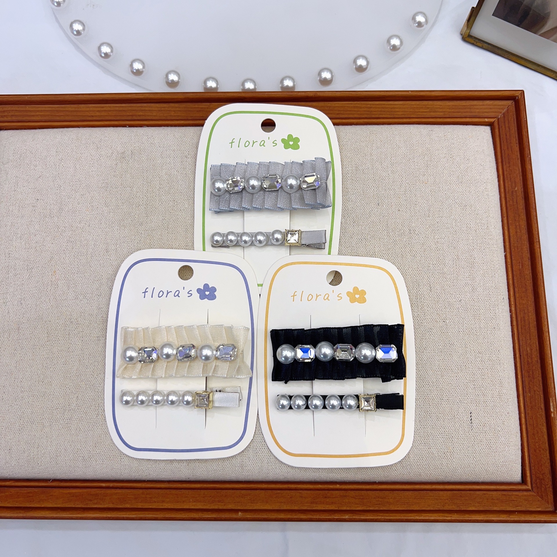 爆款ins风褶皱对夹复古轻奢国风刘海侧边珍珠洋气新款发饰 OK