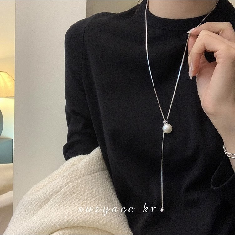 suzyacc kr小众设计可抽拉珍珠长款项链新款简约气质毛衣链