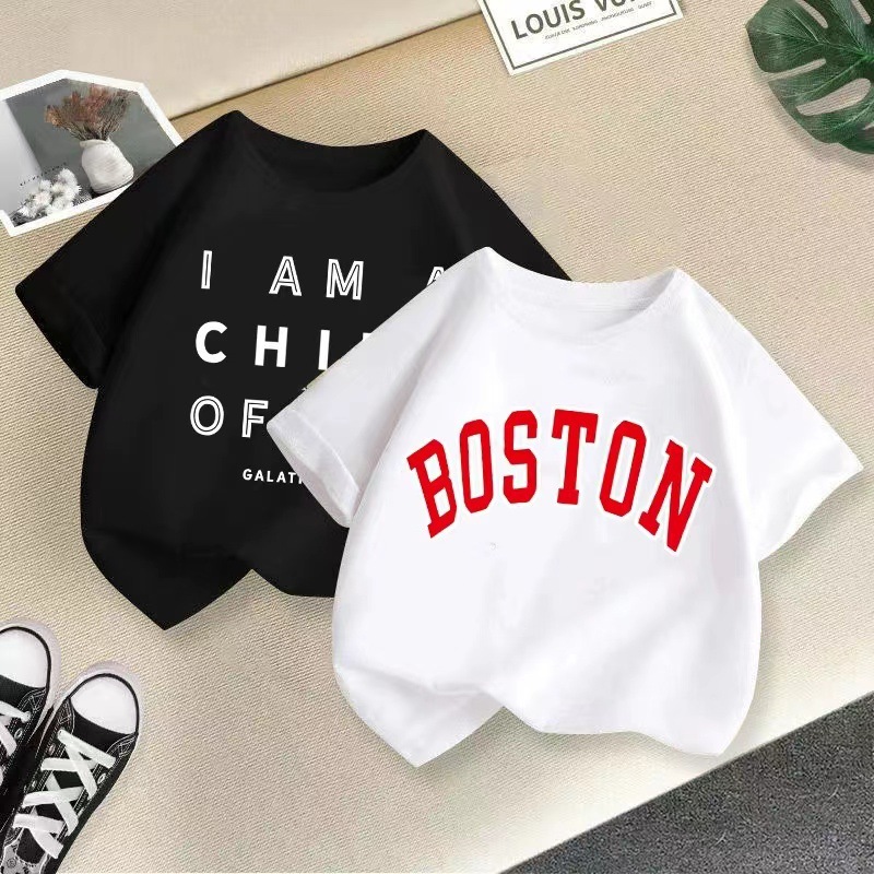 童装男童夏季短袖T恤新款儿童纯棉印花字母t恤中大童炸街上衣