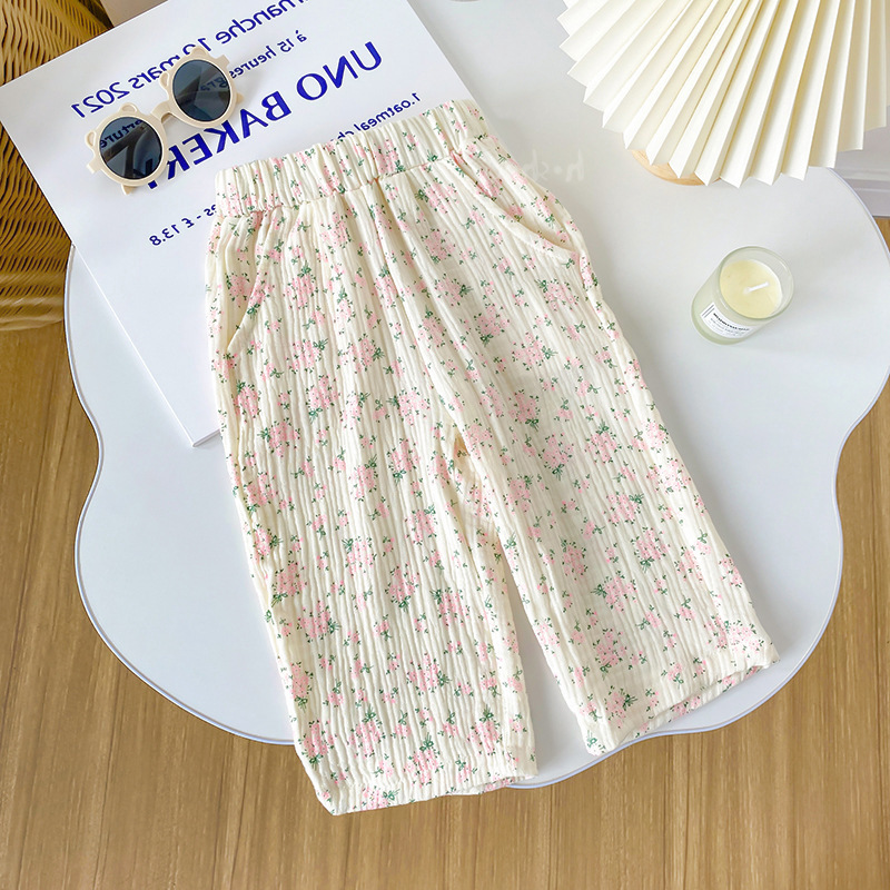 夏季女童休闲裤宝宝洋气儿童个性潮牌韩版清新甜美碎花九分阔腿裤