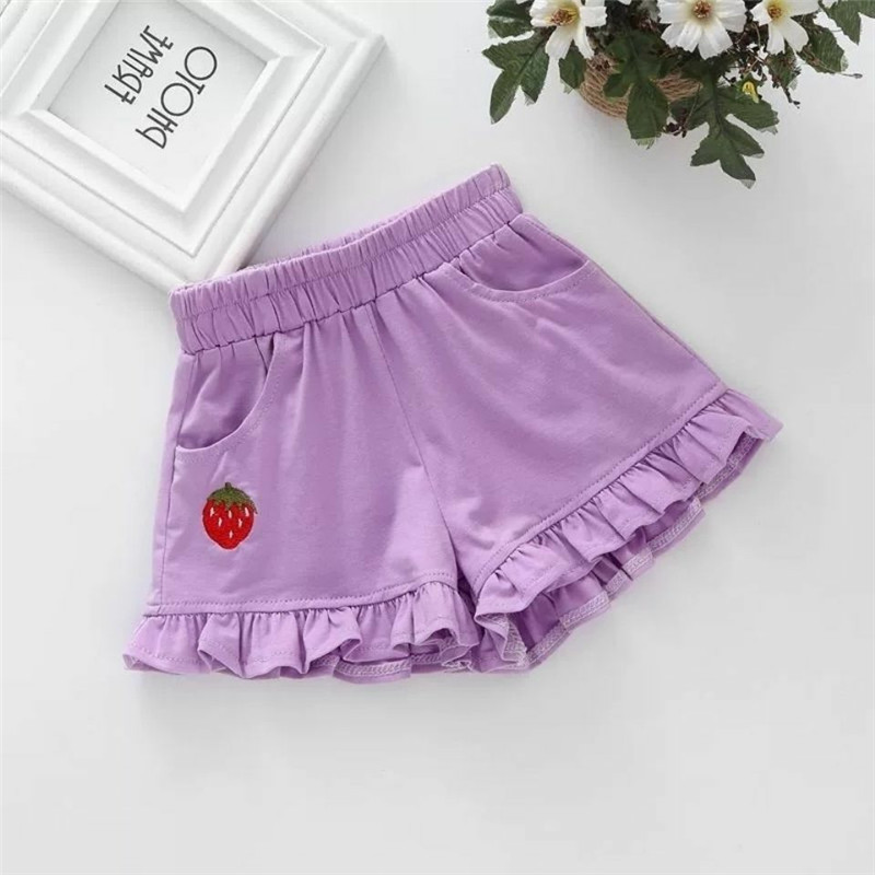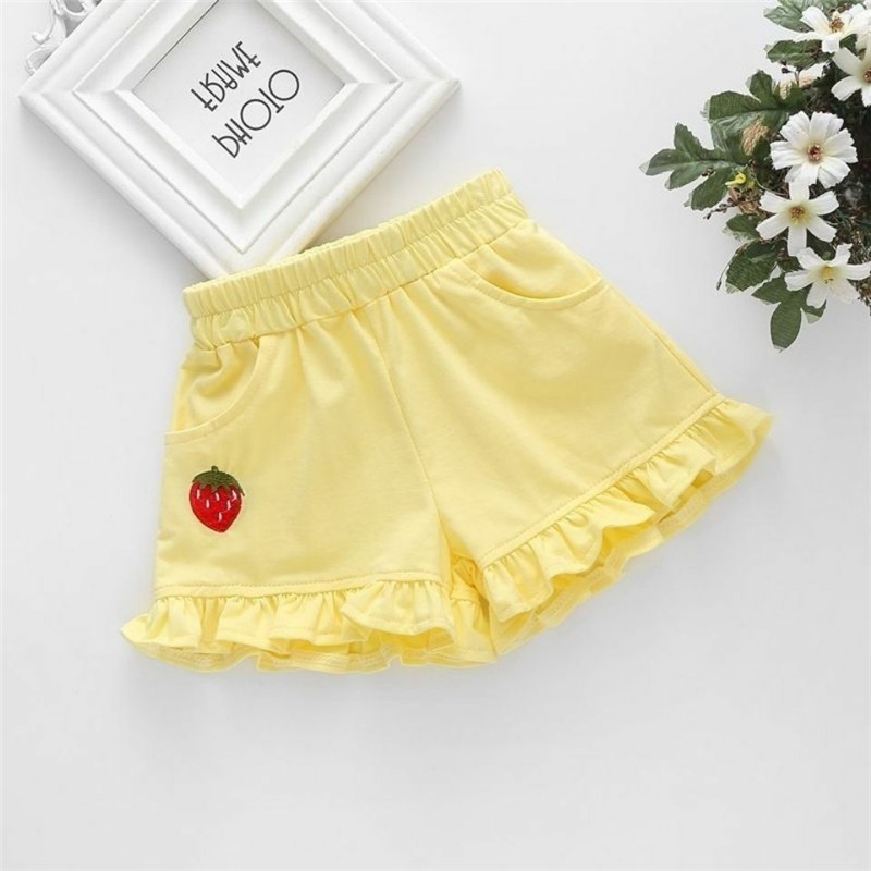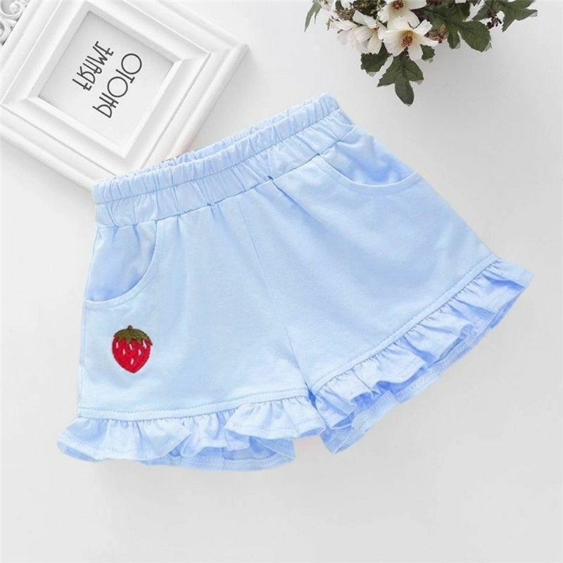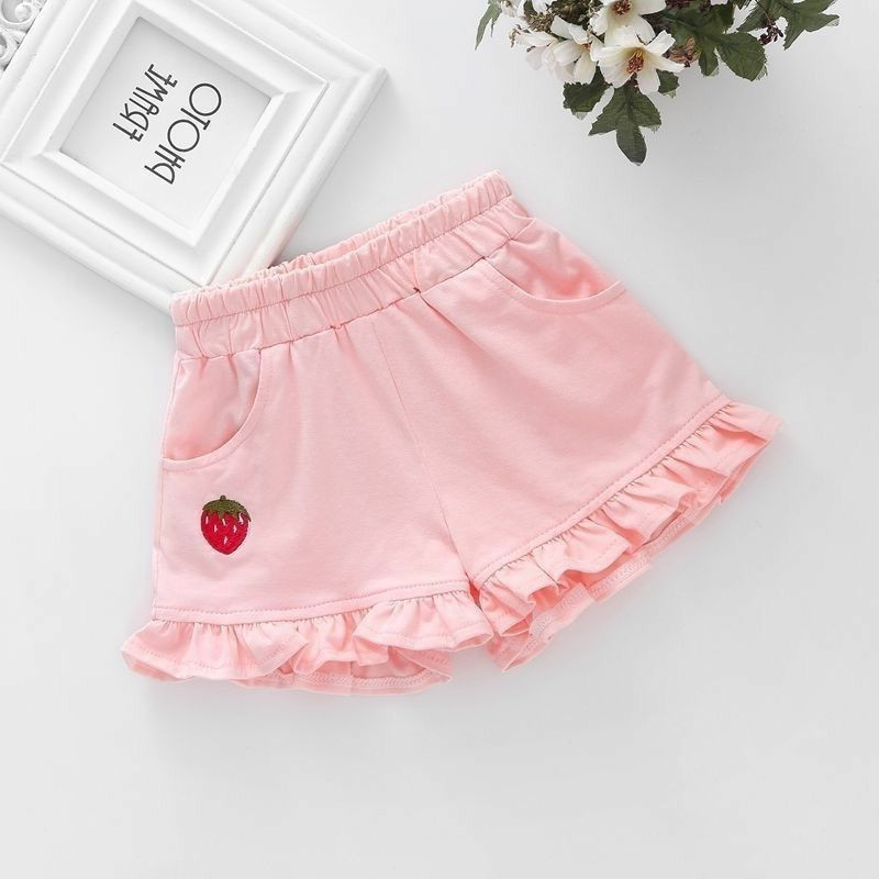 女童夏装短裤宝宝洋气儿童个性潮牌韩版草莓刺绣花边百搭运动热裤