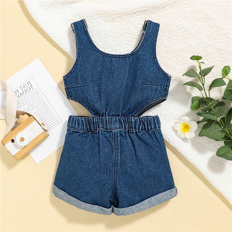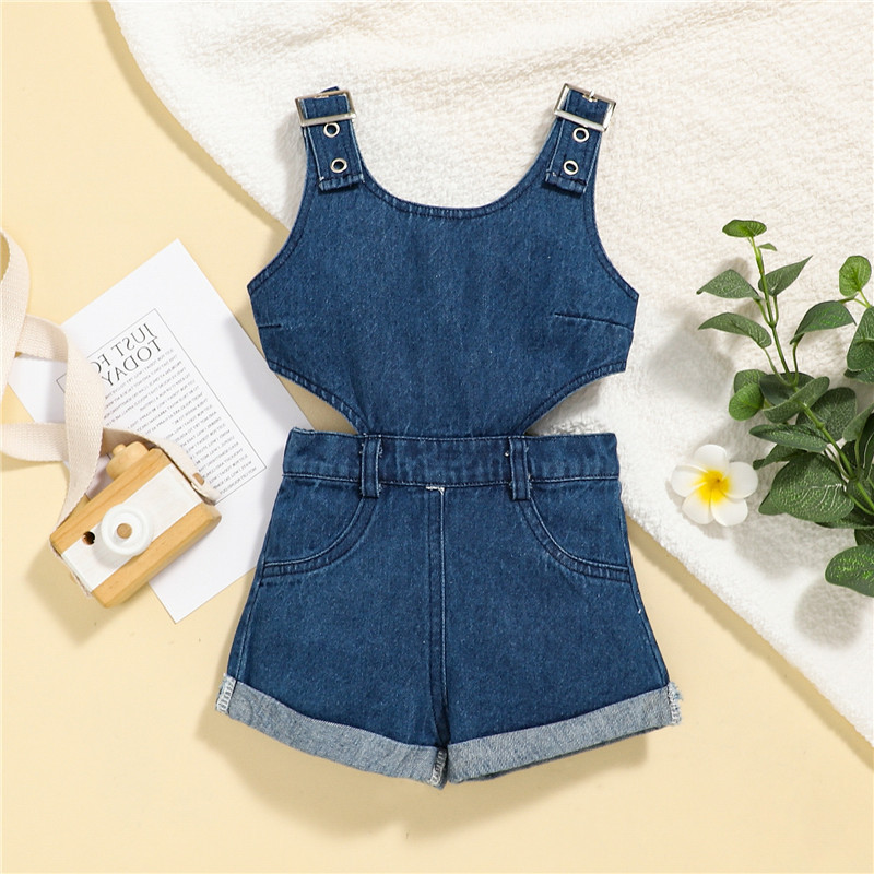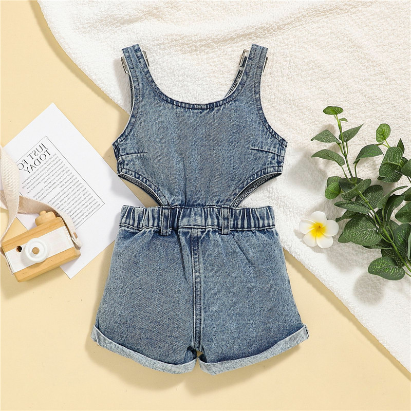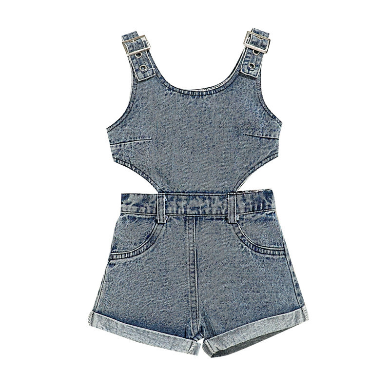 女童夏装连体衣宝宝洋气儿童个性潮时髦网红牛仔短裤吊带连身裤