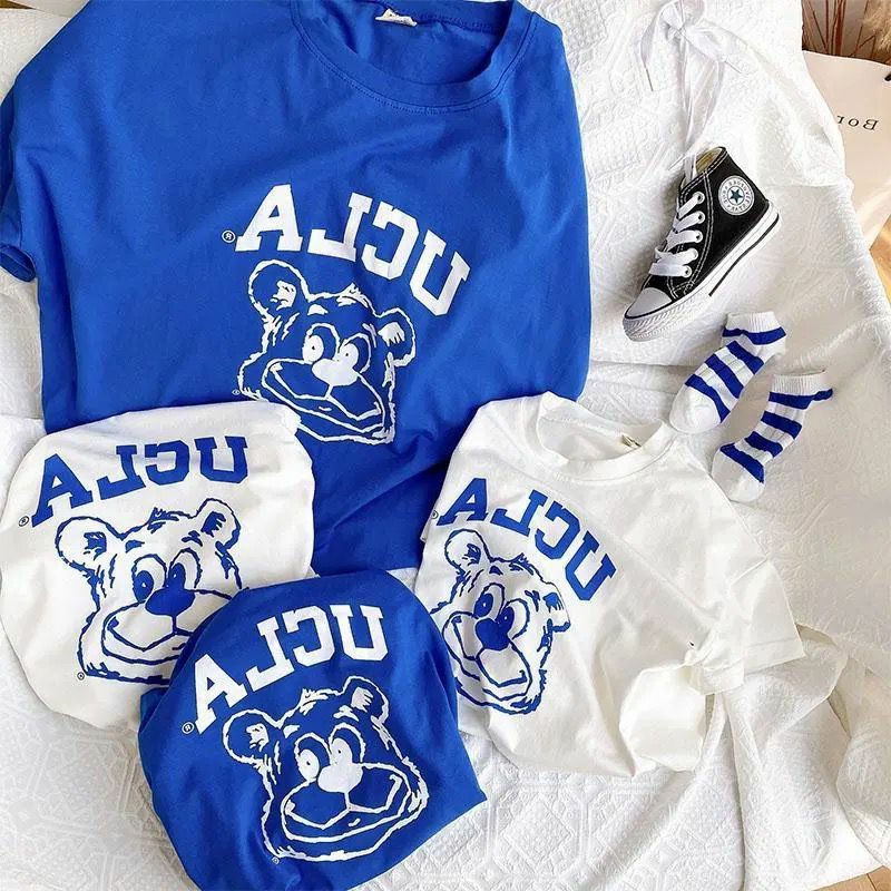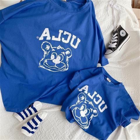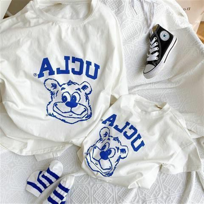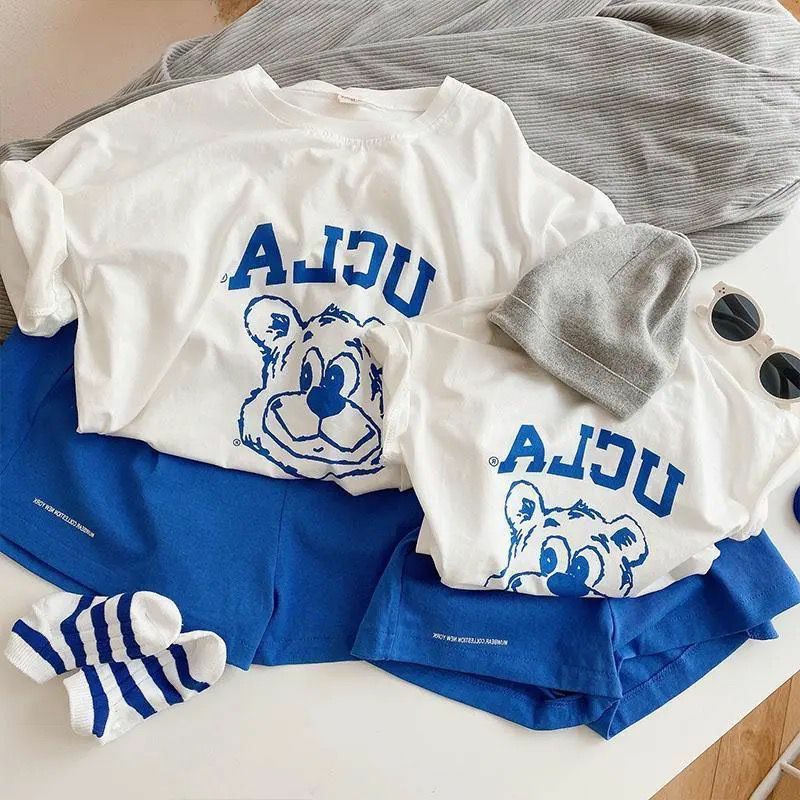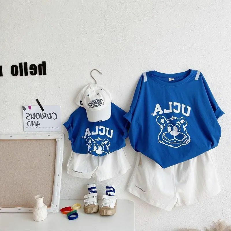 夏季男女童一家三口亲子装网红洋气儿童个性潮卡通字母运动两件套
