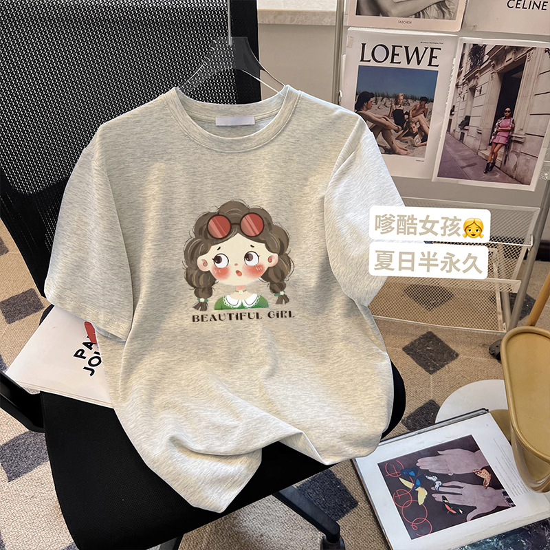 2025夏季新款设计感花灰色短袖t恤女宽松小众洋气减龄小个子上衣