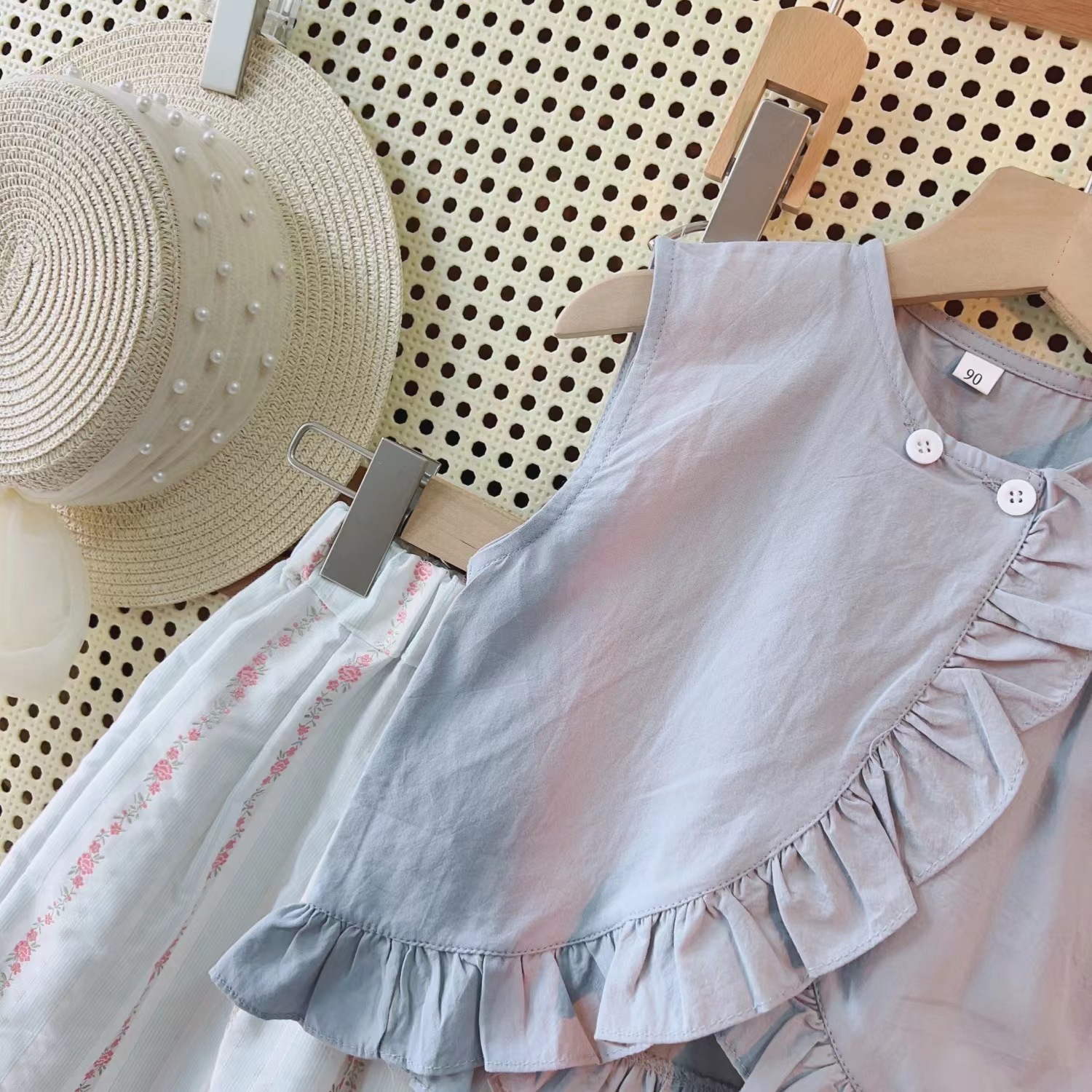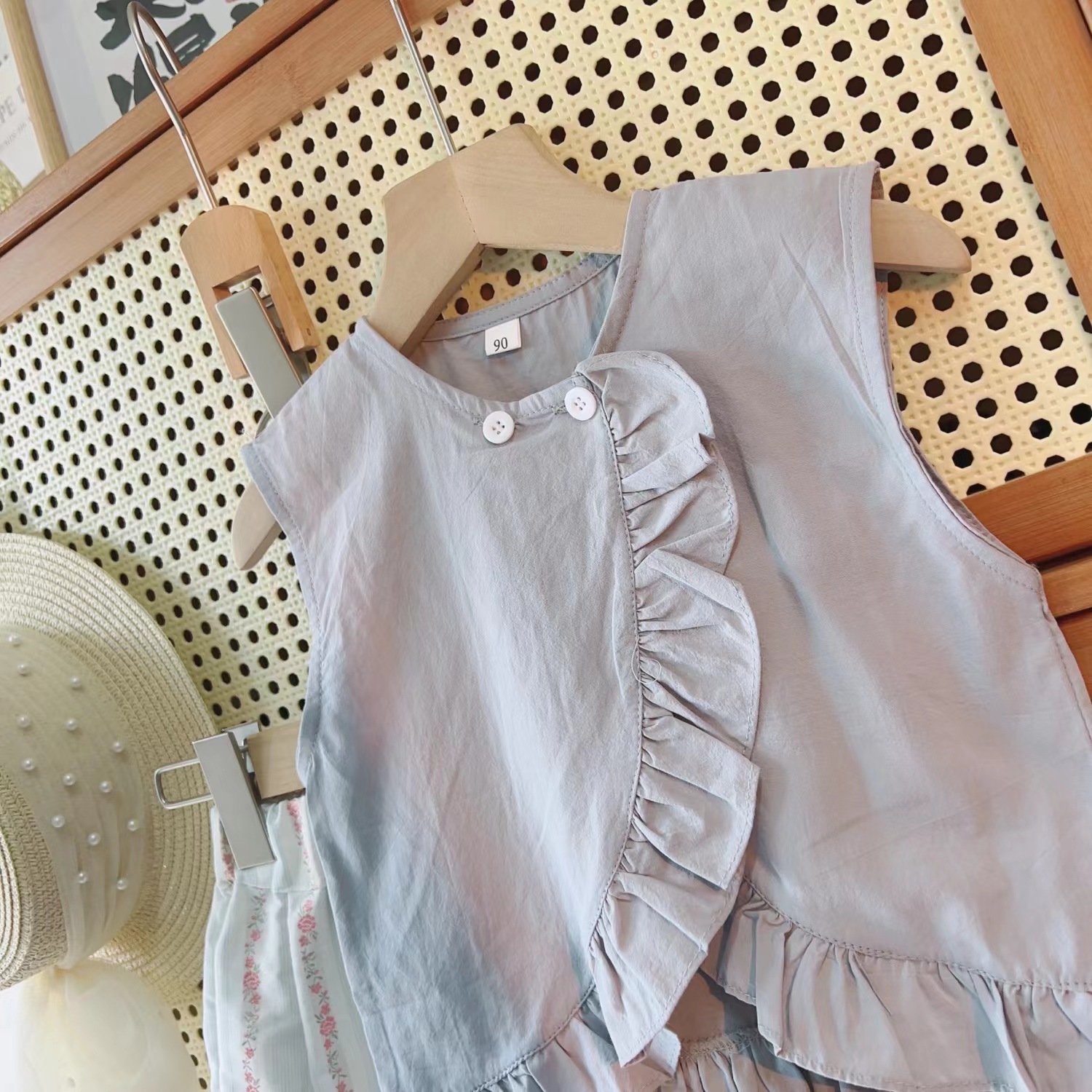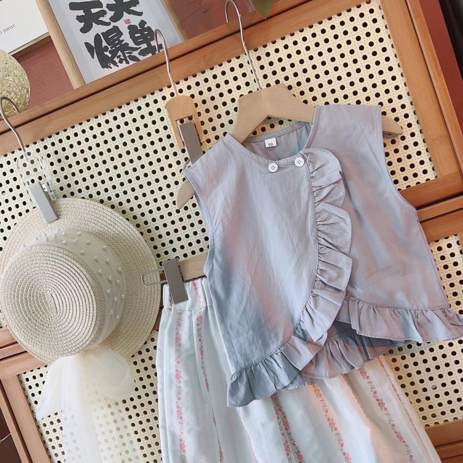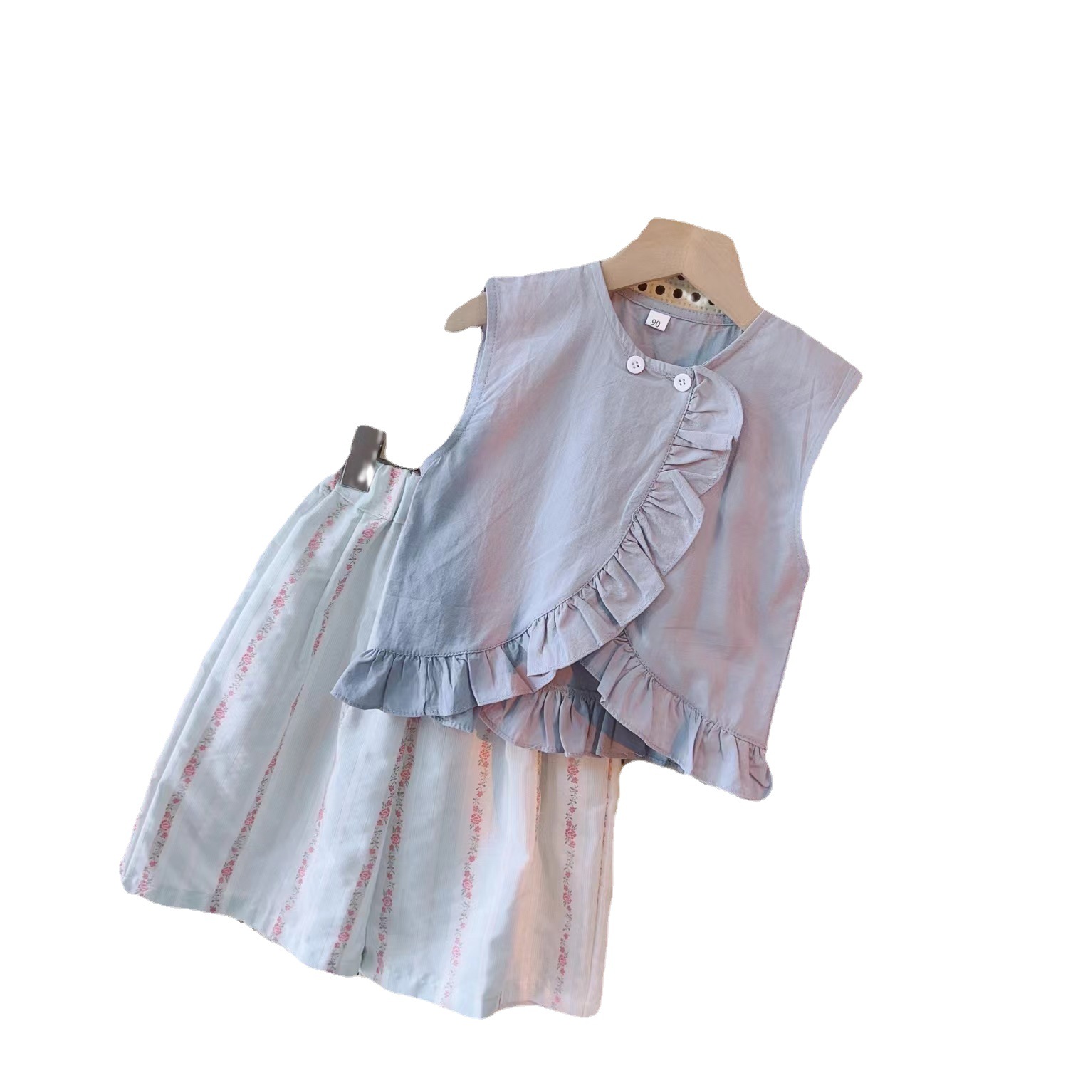夏季女童套装宝宝洋气儿童个性潮牌韩版花边背心上衣阔腿裤两件套