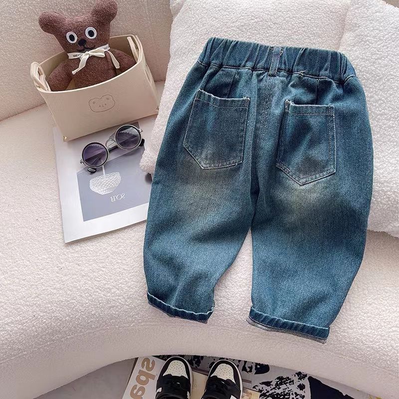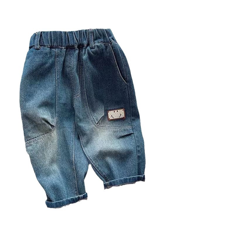 春秋男女童装牛仔裤宝宝洋气儿童个性潮牌韩版卡通笑脸宽松哈伦裤